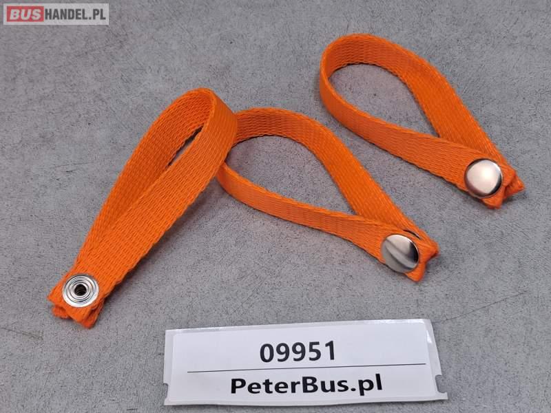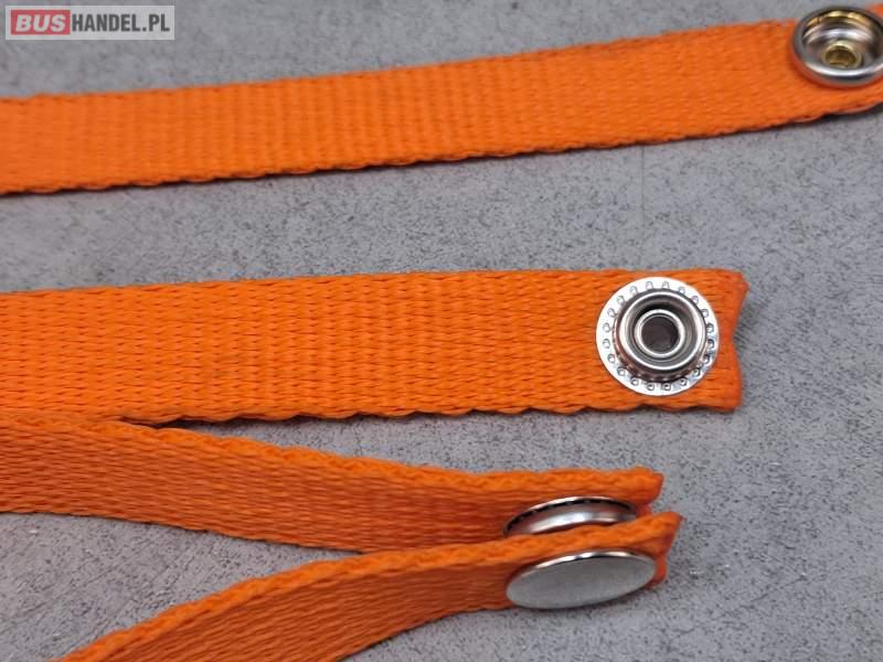 Zapinki, obejmy, uchwyty do zasłon autobusowych - POJEDYNCZE - na jedną zasłonę, kolor pomarańczowy - POJEDYNCZE - na jedną zasłonę kolor pomarańczowy - NOWE - - WYTRZYMAŁE - zapinane mocowane do słupka autobusu na wkręt przez otwór w zapięciu Sprzedający:
