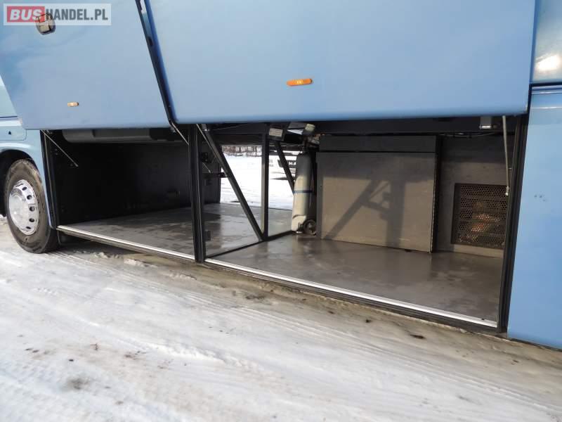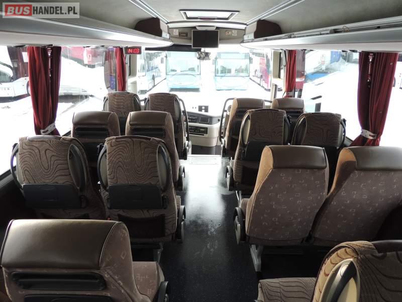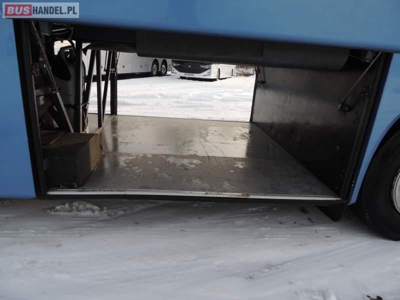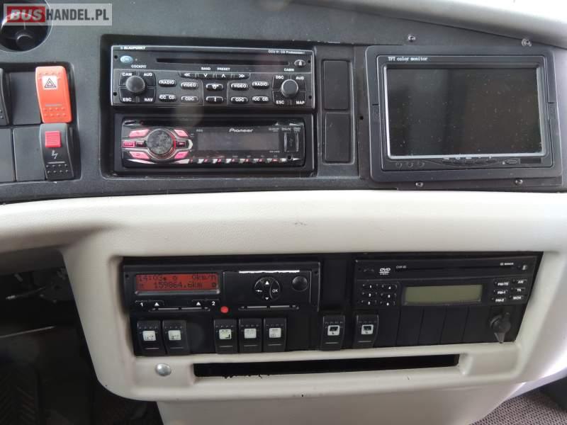 : video, WC, lodówka, caffebar, kabina sypialna, oświetlenie indywidualne, nawiewy dyszowe, siateczki, ABS, ASR, tempomat, retarder, CD, stoliczki, mikrofon, klimatyzacja, radio, rampa dla inwalidów, regulacja wysokości nadwozia, centralny zamek, podwójne szyby boczne, wspomaganie kierownicy, elektryczne lusterka, fotele odchylane i rozsuwane, DVD, ogrzewanie stacjonarne, ESP