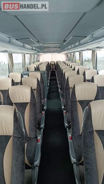 : WC, lodówka, oświetlenie indywidualne, nawiewy dyszowe, siateczki, ABS, ASR, tempomat, retarder, podnóżki, stoliczki, mikrofon, klimatyzacja, radio, sejf, regulacja wysokości nadwozia, centralny zamek, podwójne szyby boczne, wspomaganie kierownicy, elektryczne lusterka, fotele odchylane i rozsuwane, DVD, ogrzewanie stacjonarne, ESP