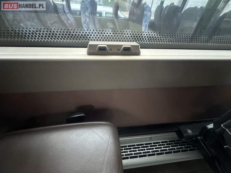 : lodówka, caffebar, kabina sypialna, oświetlenie indywidualne, ABS, ASR, retarder, nawigacja, CD, podnóżki, mikrofon, klimatyzacja, radio, kuchenka mikrofalowa, podwójne szyby boczne, aluminiowe felgi, fotele odchylane i rozsuwane, DVD, ogrzewanie stacjonarne, ESP