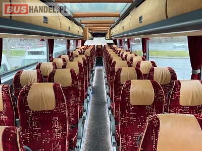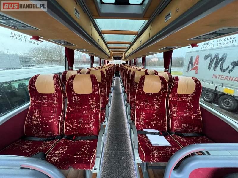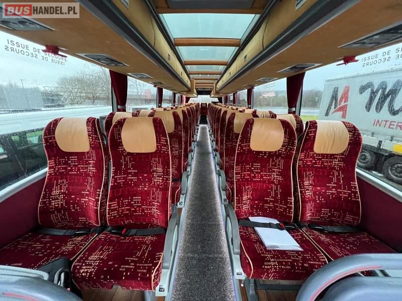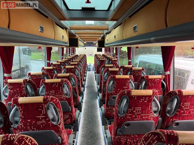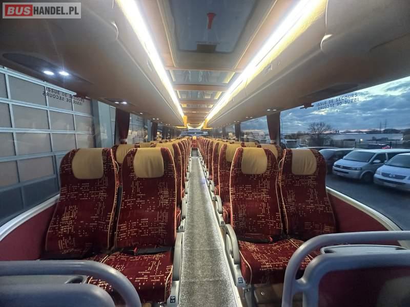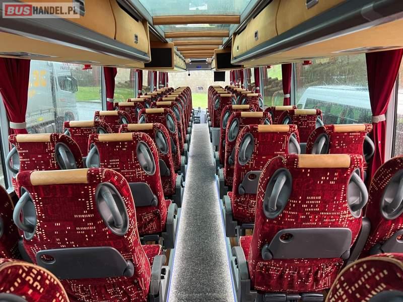 : video, WC, lodówka, oświetlenie indywidualne, ABS, ASR, tempomat, retarder, CD, podnóżki, mikrofon, klimatyzacja, radio, podwójne szyby boczne, aluminiowe felgi, fotele odchylane i rozsuwane, DVD, ogrzewanie stacjonarne, ESP