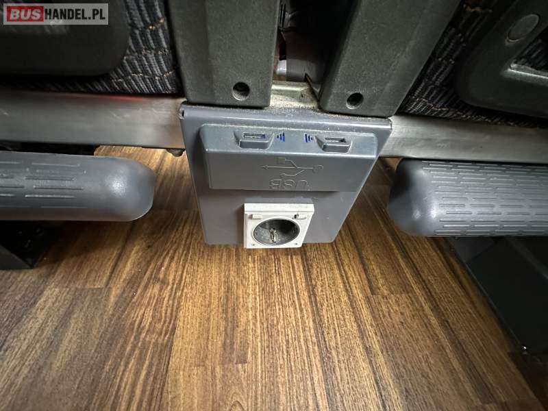 : video, WC, lodówka, oświetlenie indywidualne, ABS, ASR, tempomat, retarder, CD, mikrofon, klimatyzacja, radio, podwójne szyby boczne, fotele odchylane i rozsuwane, DVD, ogrzewanie stacjonarne, ESP