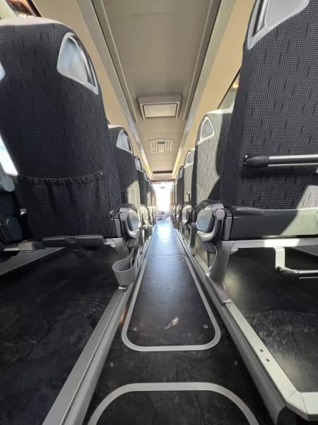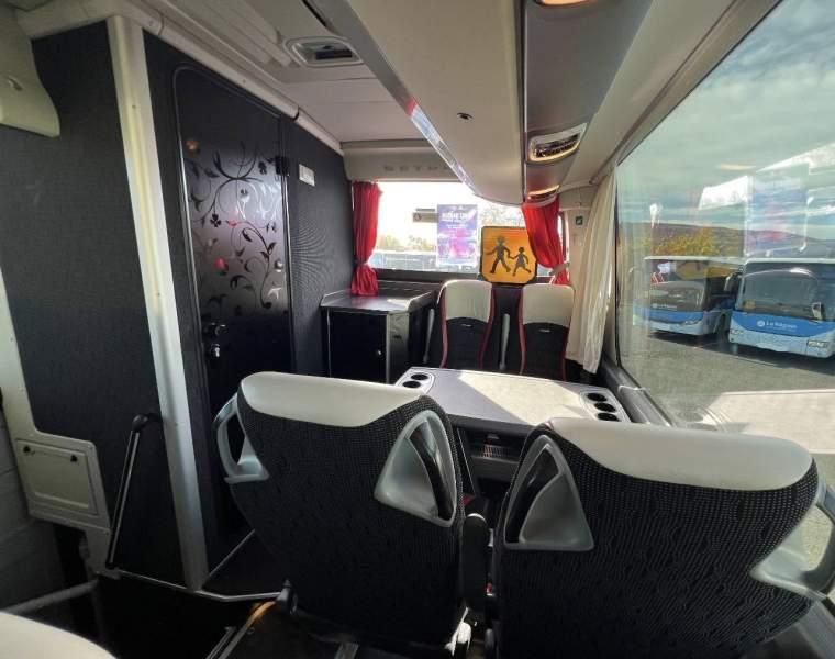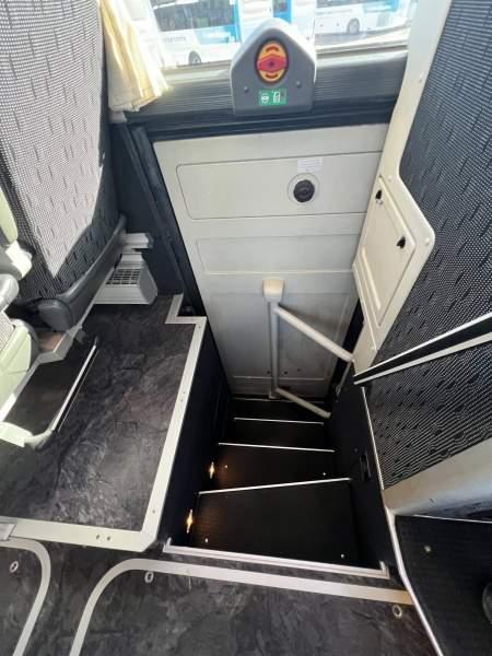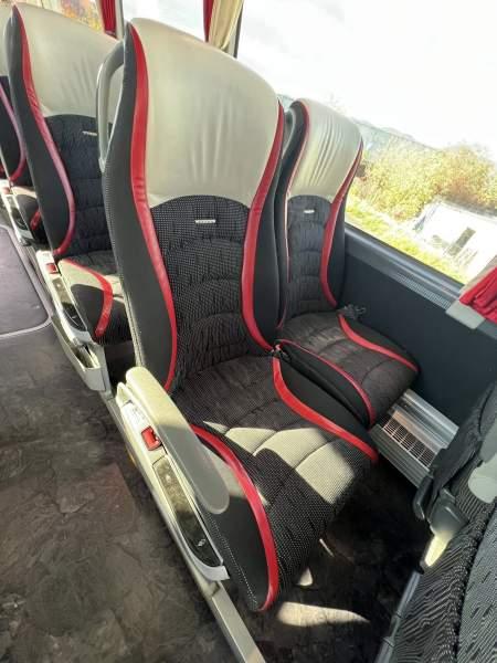 : video, WC, lodówka, fotele odchylane, siateczki, ABS, ASR, telefon, nawigacja, CD, stoliczki, mikrofon, klimatyzacja, radio, centralny zamek, podwójne szyby boczne, elektryczne lusterka, DVD, ogrzewanie stacjonarne, ESP
