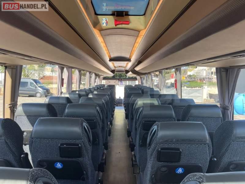 : lodówka, fotele odchylane, ABS, ASR, retarder, CD, podnóżki, stoliczki, mikrofon, klimatyzacja, DVD, ogrzewanie stacjonarne