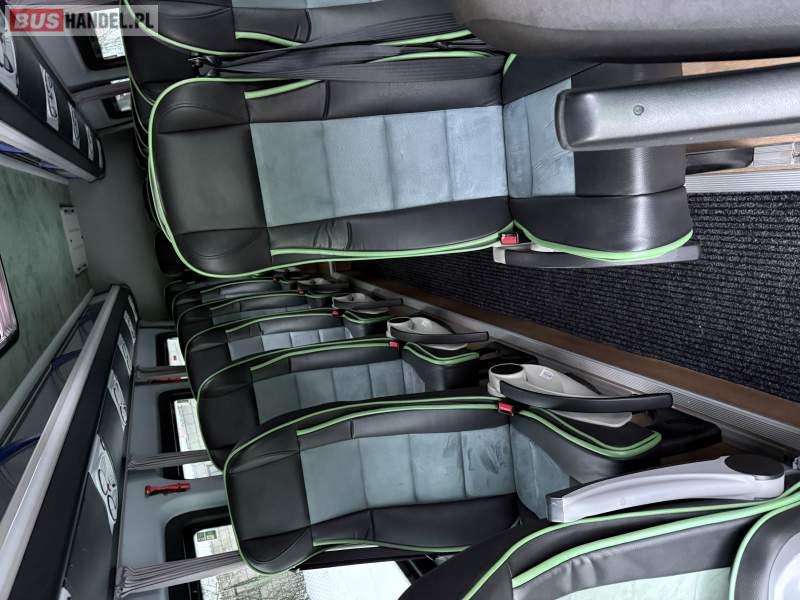 : video, oświetlenie indywidualne, ABS, ASR, tempomat, nawigacja, CD, stoliczki, mikrofon, klimatyzacja, radio, wyświetlacz matrix, centralny zamek, podwójne szyby boczne, wspomaganie kierownicy, elektryczne lusterka, fotele odchylane i rozsuwane, DVD, ogrzewanie stacjonarne, hak holowniczy, ESP