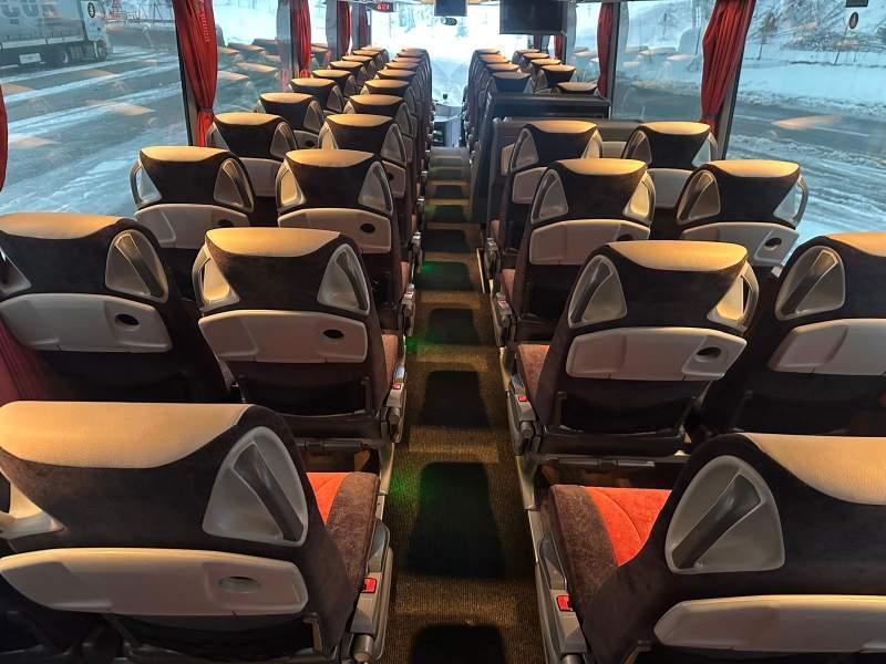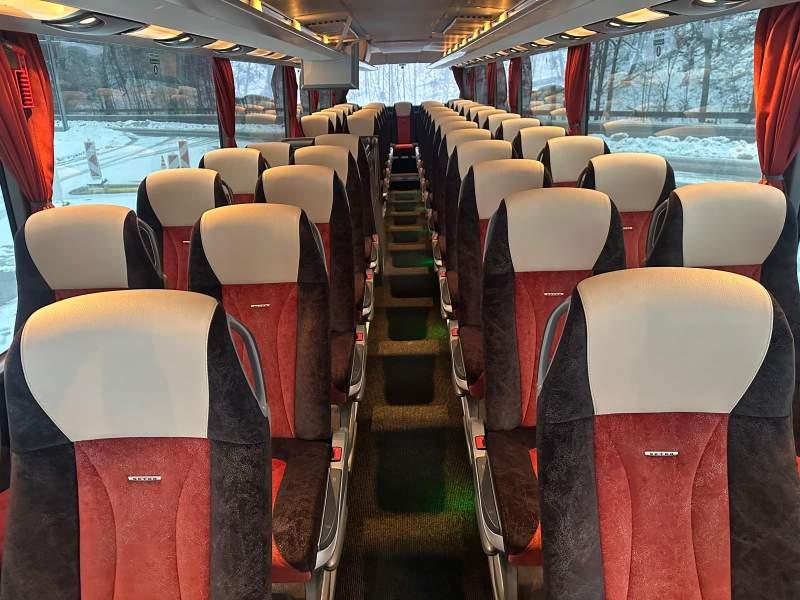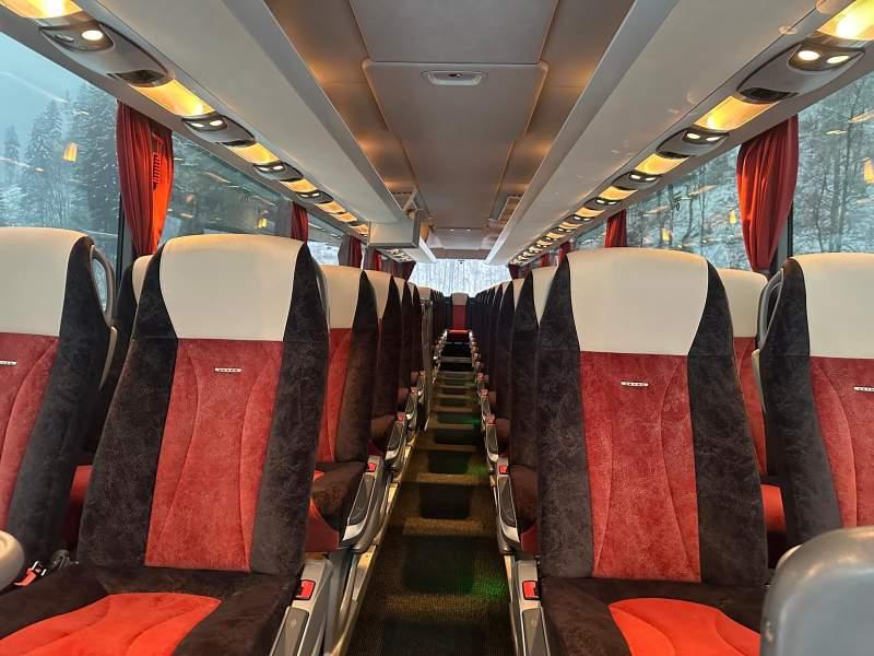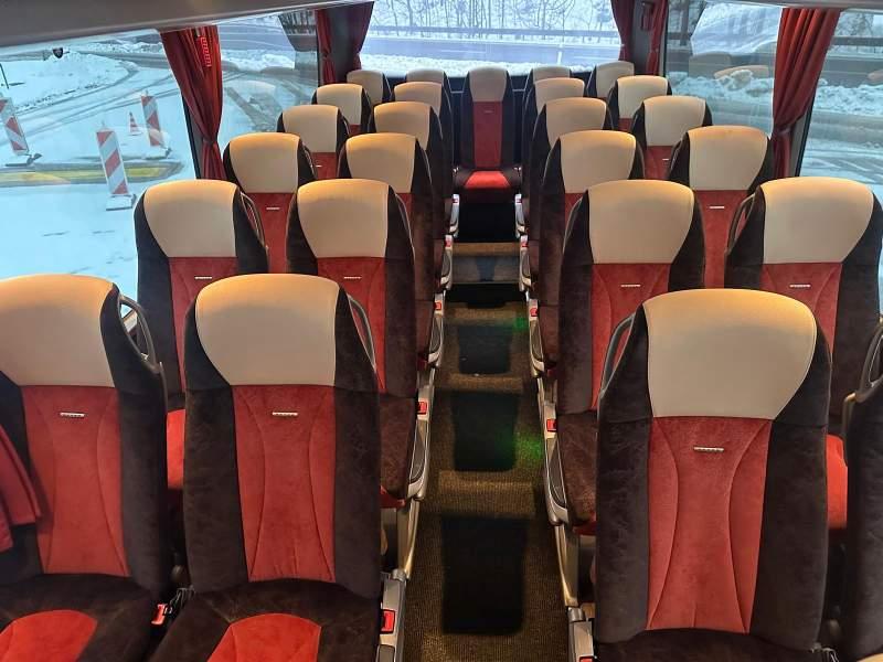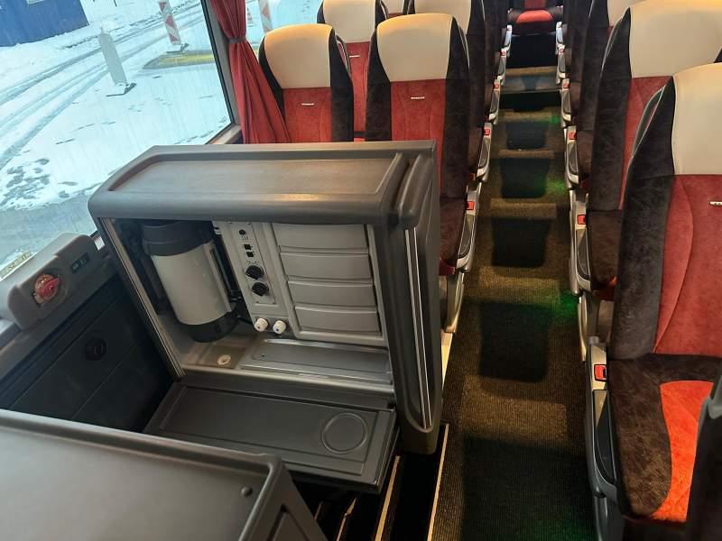 : video, WC, lodówka, caffebar, fotele odchylane, oświetlenie indywidualne, nawiewy dyszowe, siateczki, ABS, ASR, tempomat, retarder, telefon, nawigacja, CD, podnóżki, stoliczki, mikrofon, klimatyzacja, radio, wyświetlacz matrix, sejf, regulacja wysokości nadwozia, centralny zamek, podwójne szyby boczne, wspomaganie kierownicy, elektryczne lusterka, fotele odchylane i rozsuwane, DVD, ogrzewanie stacjonarne, hak holowniczy, ESP