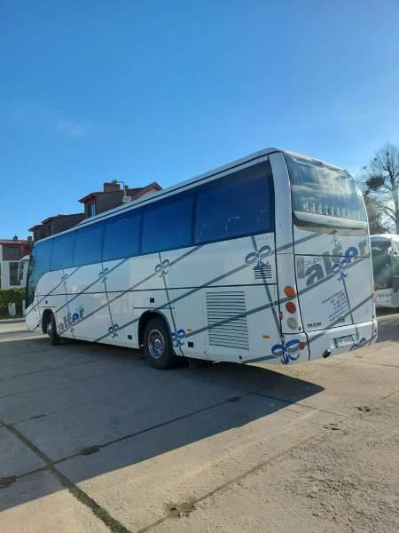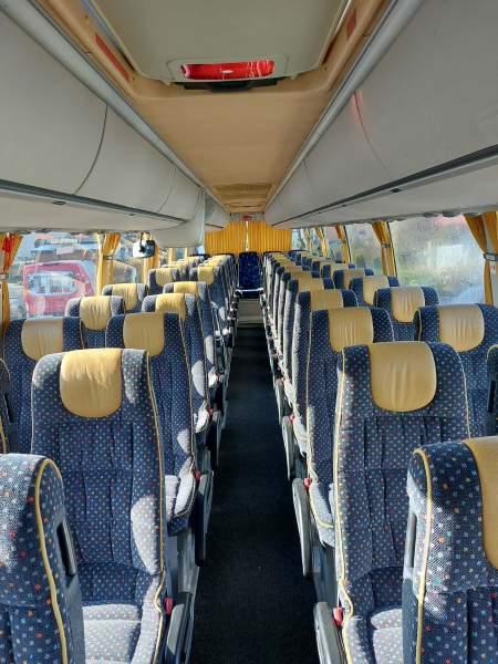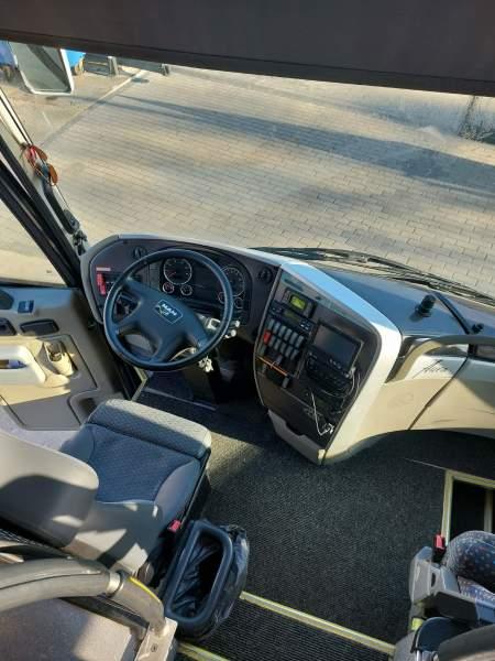 : video, WC, lodówka, kabina sypialna, fotele odchylane, oświetlenie indywidualne, nawiewy dyszowe, siateczki, ABS, ASR, tempomat, retarder, CD, podnóżki, stoliczki, mikrofon, klimatyzacja, radio, sejf, regulacja wysokości nadwozia, centralny zamek, podwójne szyby boczne, wspomaganie kierownicy, elektryczne lusterka, DVD, ogrzewanie stacjonarne, ESP