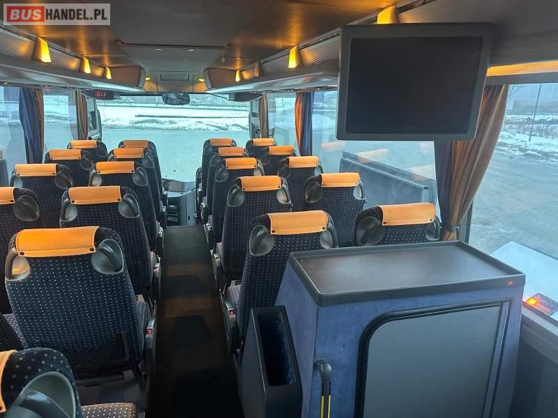 : video, WC, lodówka, caffebar, kabina sypialna, fotele odchylane, oświetlenie indywidualne, nawiewy dyszowe, ABS, ASR, tempomat, retarder, telefon, nawigacja, CD, podnóżki, mikrofon, klimatyzacja, radio, wyświetlacz matrix, sejf, regulacja wysokości nadwozia, centralny zamek, podwójne szyby boczne, wspomaganie kierownicy, elektryczne lusterka, fotele odchylane i rozsuwane, DVD, ogrzewanie stacjonarne, hak holowniczy, ESP