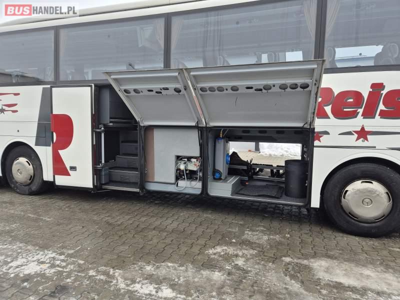 : video, WC, lodówka, caffebar, oświetlenie indywidualne, siateczki, ABS, tempomat, retarder, nawigacja, CD, podnóżki, stoliczki, mikrofon, klimatyzacja, radio, regulacja wysokości nadwozia, centralny zamek, podwójne szyby boczne, wspomaganie kierownicy, elektryczne lusterka, fotele odchylane i rozsuwane, DVD, ogrzewanie stacjonarne