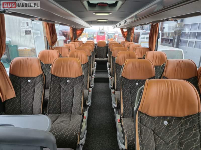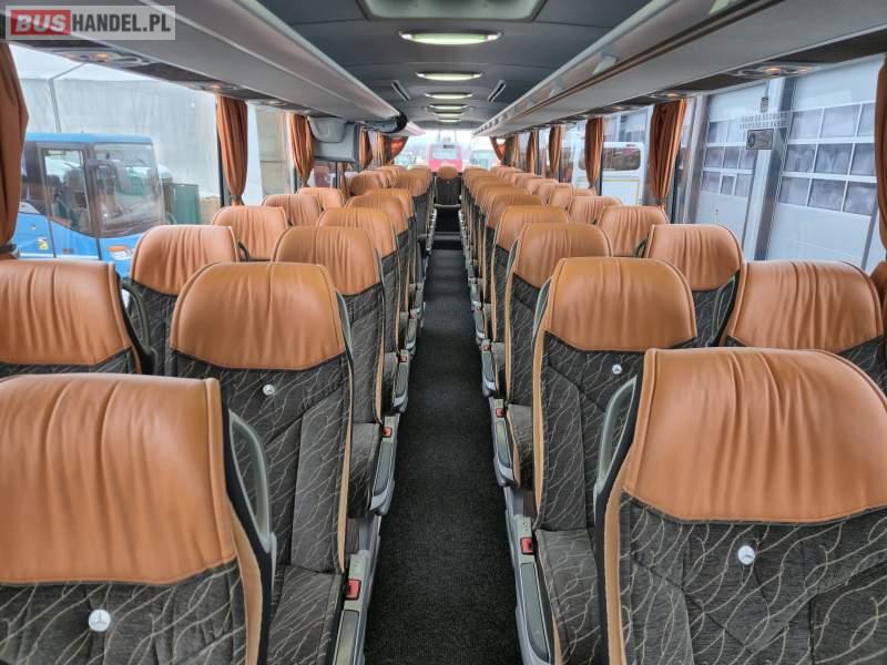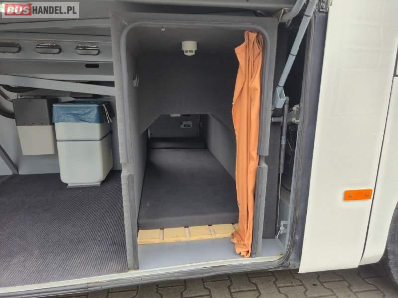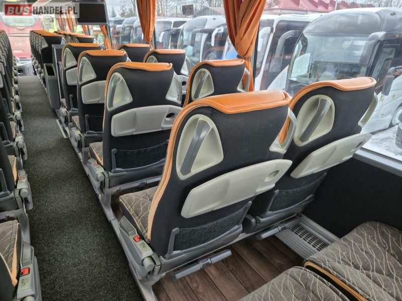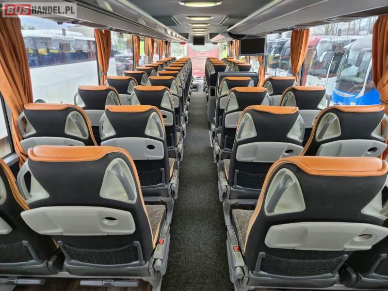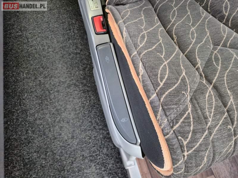: klimatyzacja, video, WC, lodówka, kabina sypialna, oświetlenie indywidualne, podnóżki, stoliczki, siateczki, ABS, tempomat, retarder, CD, radio, fotele odchylane i rozsuwane, regulacja wysokości nadwozia, centralny zamek, podwójne szyby boczne, wspomaganie kierownicy, elektryczne lusterka, ogrzewanie stacjonarne, DVD