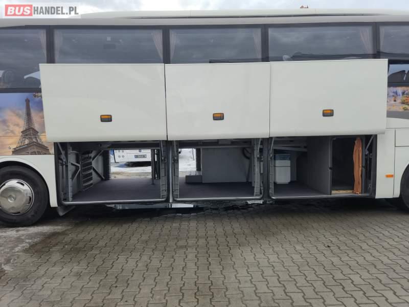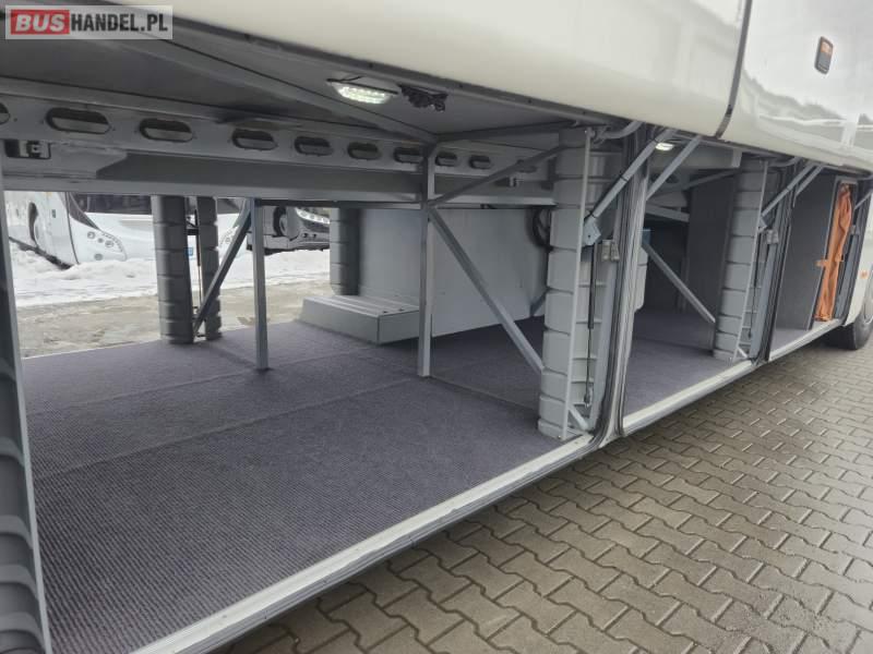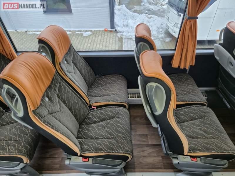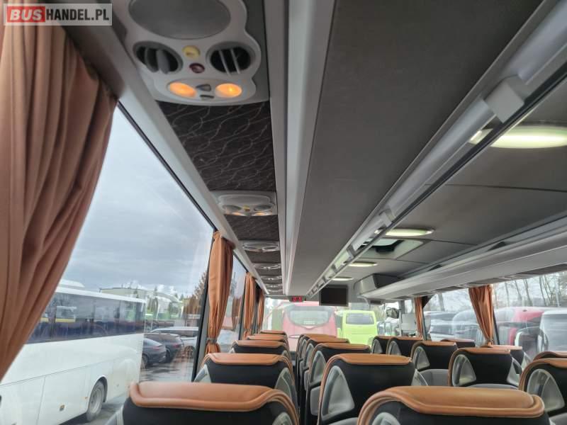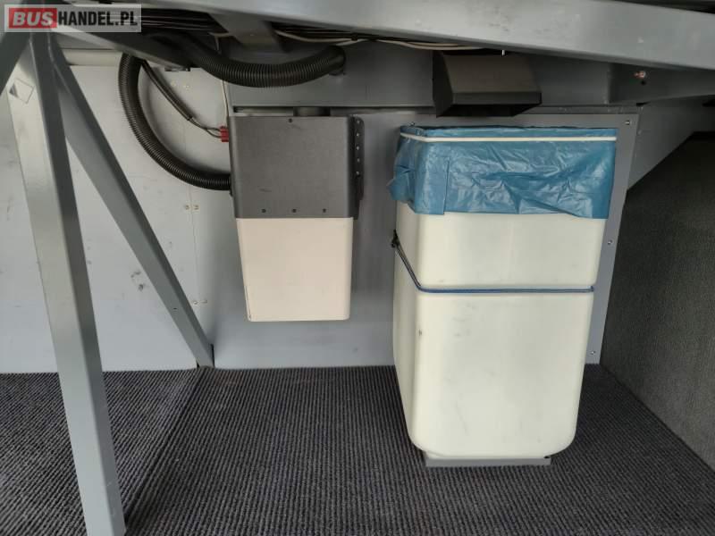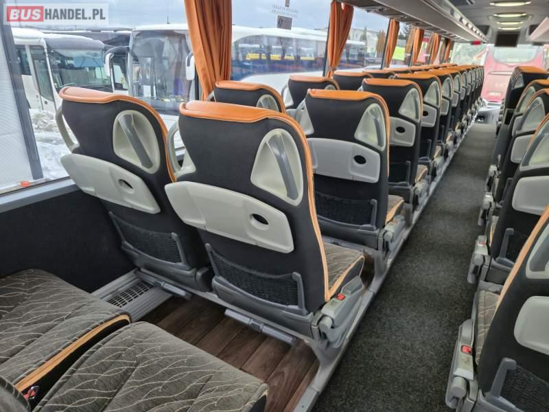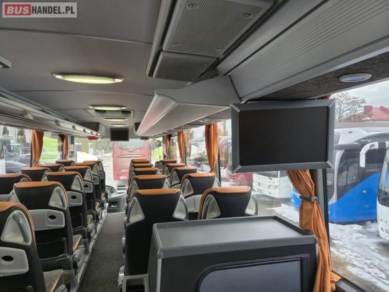 : klimatyzacja, video, WC, lodówka, kabina sypialna, oświetlenie indywidualne, podnóżki, stoliczki, siateczki, ABS, tempomat, retarder, CD, radio, fotele odchylane i rozsuwane, regulacja wysokości nadwozia, centralny zamek, podwójne szyby boczne, wspomaganie kierownicy, elektryczne lusterka, ogrzewanie stacjonarne, DVD