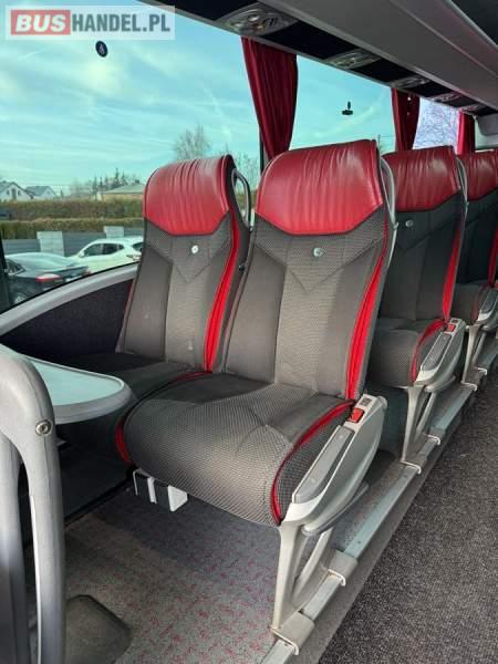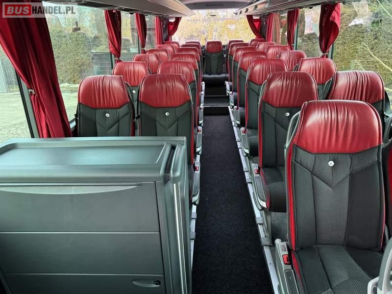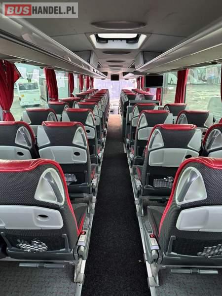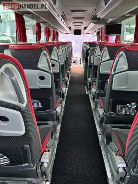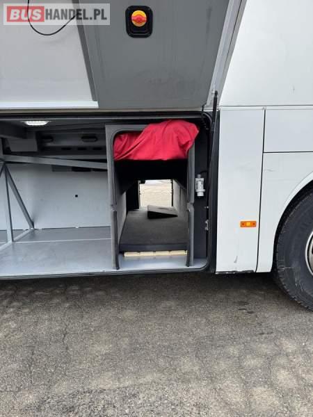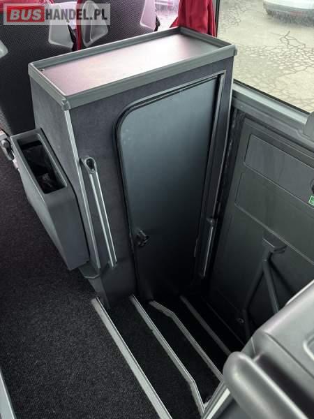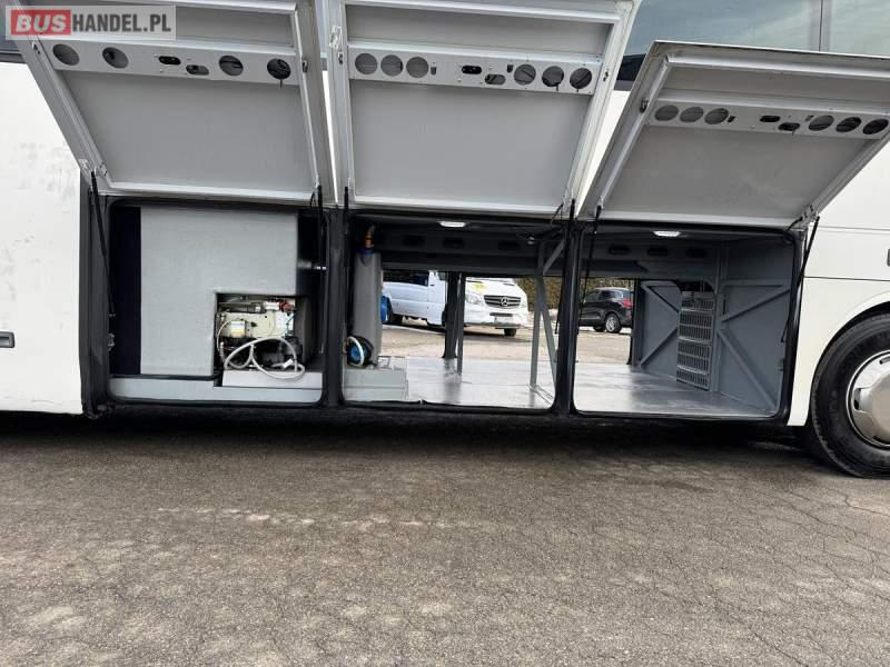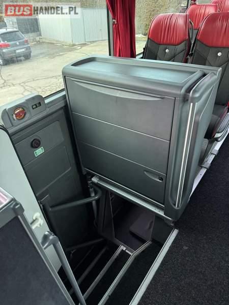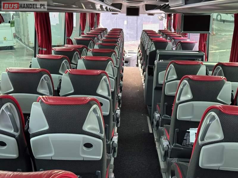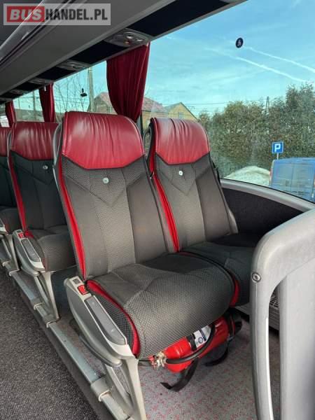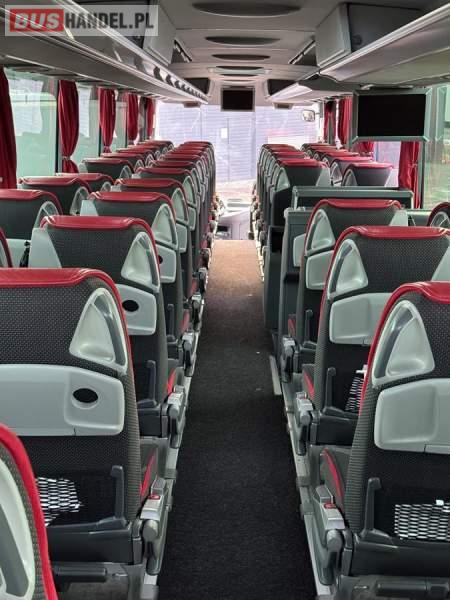 : video, WC, lodówka, caffebar, oświetlenie indywidualne, nawiewy dyszowe, siateczki, ABS, ASR, tempomat, retarder, CD, podnóżki, stoliczki, mikrofon, klimatyzacja, radio, wyświetlacz matrix, regulacja wysokości nadwozia, centralny zamek, podwójne szyby boczne, wspomaganie kierownicy, elektryczne lusterka, fotele odchylane i rozsuwane, DVD, ogrzewanie stacjonarne, ESP