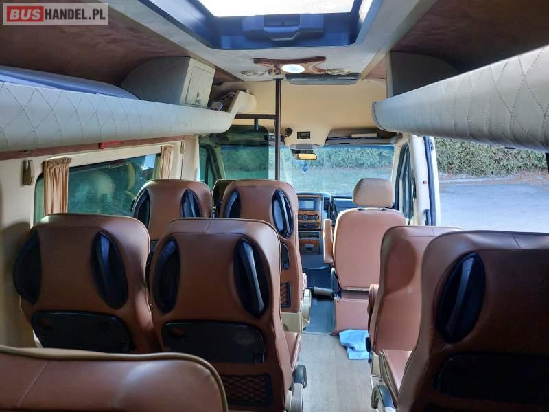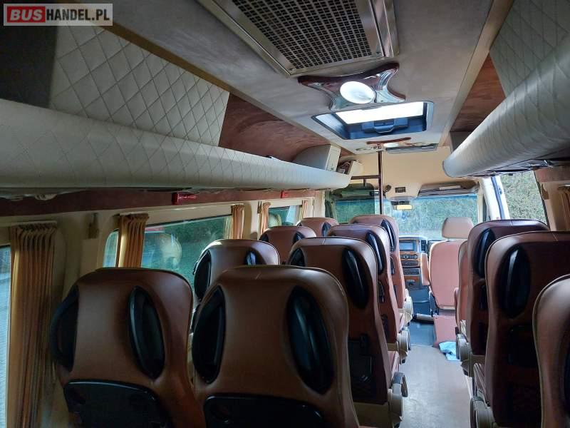 : video, oświetlenie indywidualne, nawiewy dyszowe, siateczki, ABS, ASR, tempomat, nawigacja, CD, podnóżki, stoliczki, mikrofon, klimatyzacja, radio, wyświetlacz matrix, centralny zamek, podwójne szyby boczne, wspomaganie kierownicy, elektryczne lusterka, aluminiowe felgi, fotele odchylane i rozsuwane, DVD, ogrzewanie stacjonarne, hak holowniczy, ESP