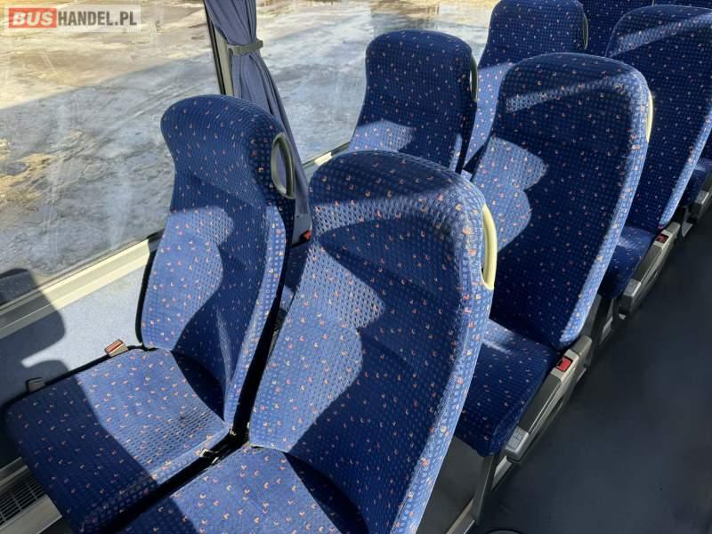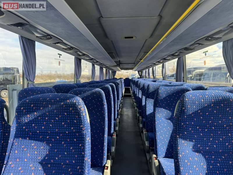 : video, lodówka, oświetlenie indywidualne, nawiewy dyszowe, ABS, ASR, tempomat, retarder, CD, podnóżki, mikrofon, klimatyzacja, radio, regulacja wysokości nadwozia, centralny zamek, podwójne szyby boczne, wspomaganie kierownicy, elektryczne lusterka, fotele odchylane i rozsuwane, DVD, ogrzewanie stacjonarne, ESP