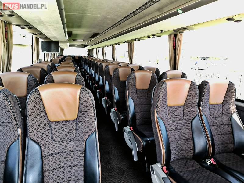 : WC, lodówka, caffebar, kabina sypialna, oświetlenie indywidualne, nawiewy dyszowe, siateczki, ABS, ASR, tempomat, retarder, nawigacja, CD, podnóżki, stoliczki, mikrofon, klimatyzacja, radio, sejf, regulacja wysokości nadwozia, podwójne szyby boczne, wspomaganie kierownicy, elektryczne lusterka, fotele odchylane i rozsuwane, DVD, ogrzewanie stacjonarne, ESP