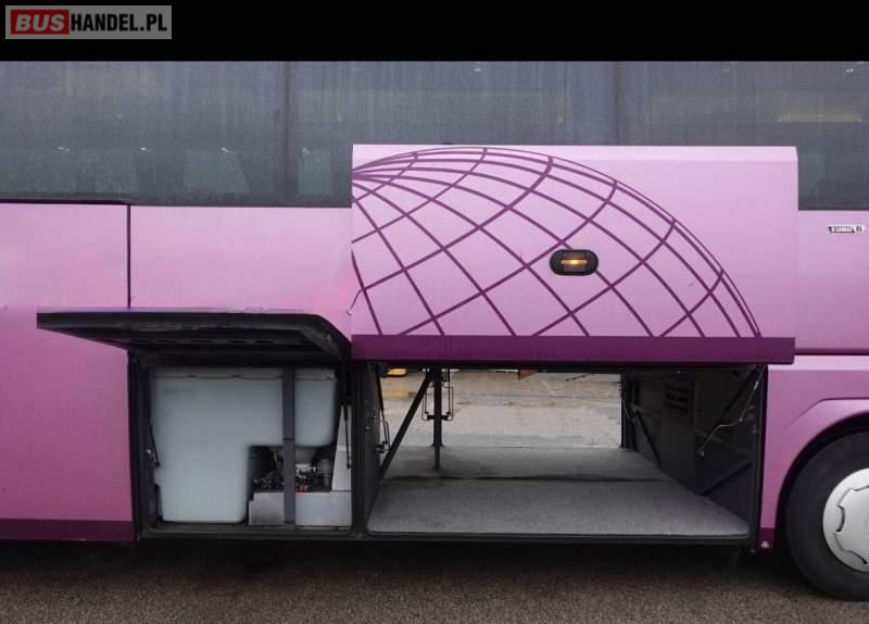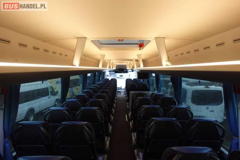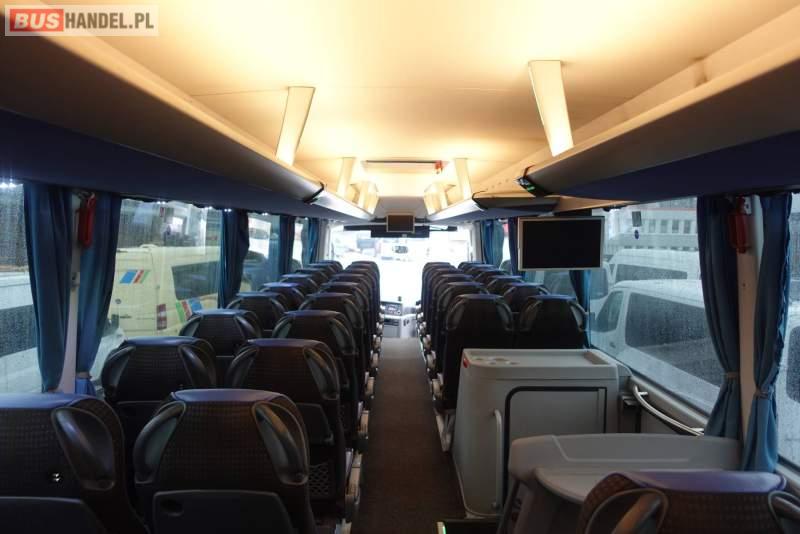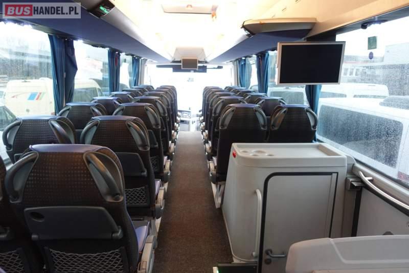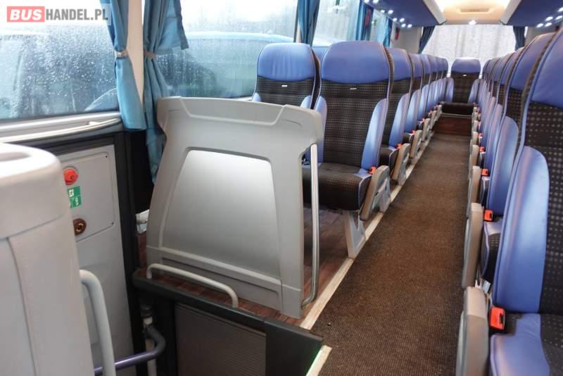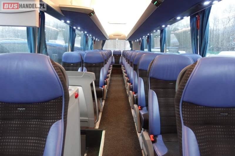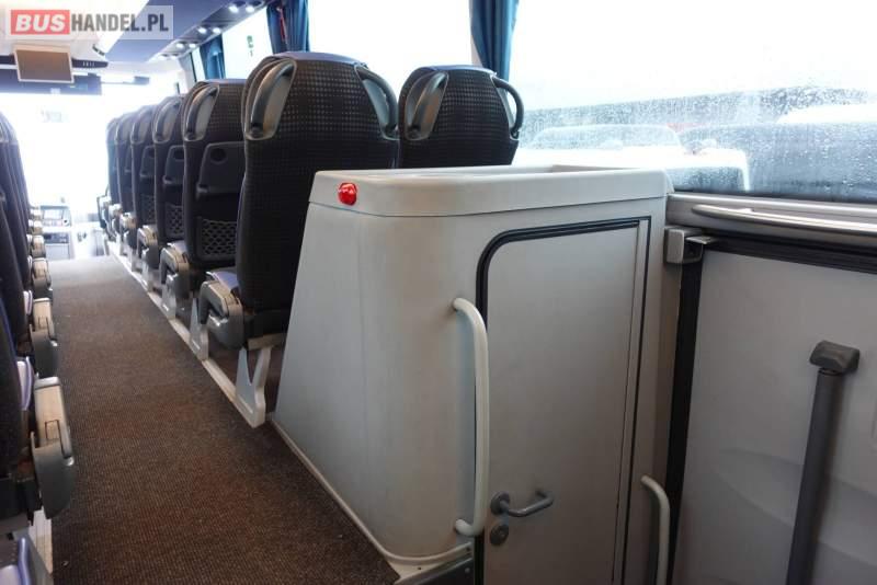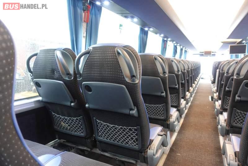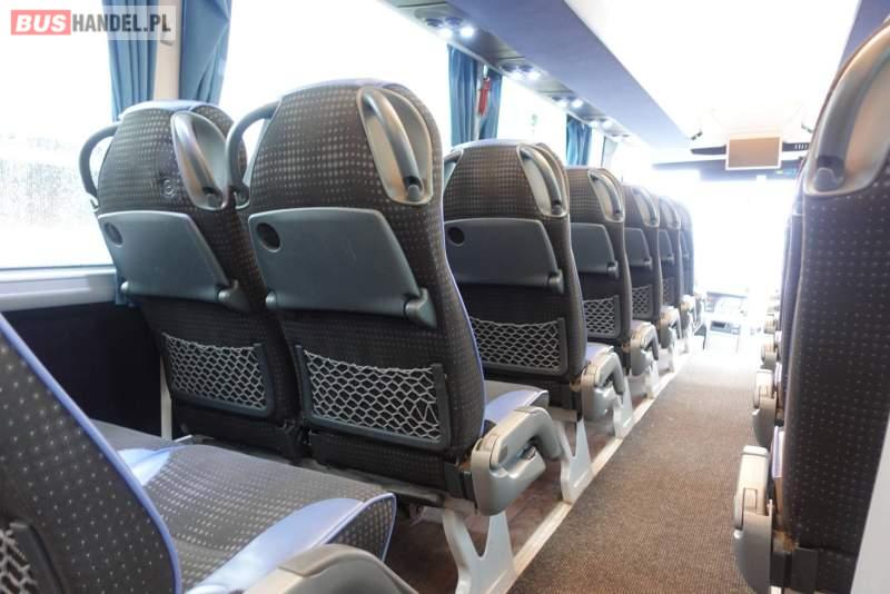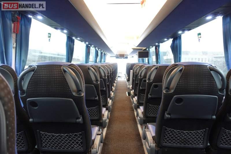: video, WC, lodówka, kabina sypialna, fotele odchylane, oświetlenie indywidualne, nawiewy dyszowe, siateczki, ABS, ASR, tempomat, retarder, nawigacja, CD, podnóżki, stoliczki, mikrofon, klimatyzacja, radio, regulacja wysokości nadwozia, centralny zamek, podwójne szyby boczne, wspomaganie kierownicy, elektryczne lusterka, fotele odchylane i rozsuwane, DVD, ogrzewanie stacjonarne, ESP