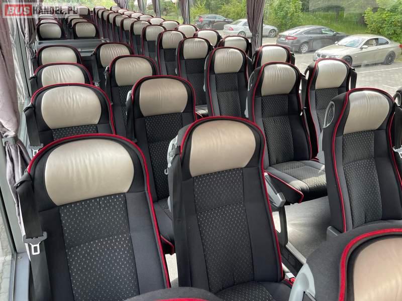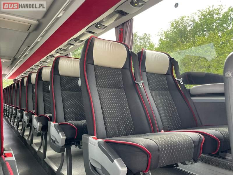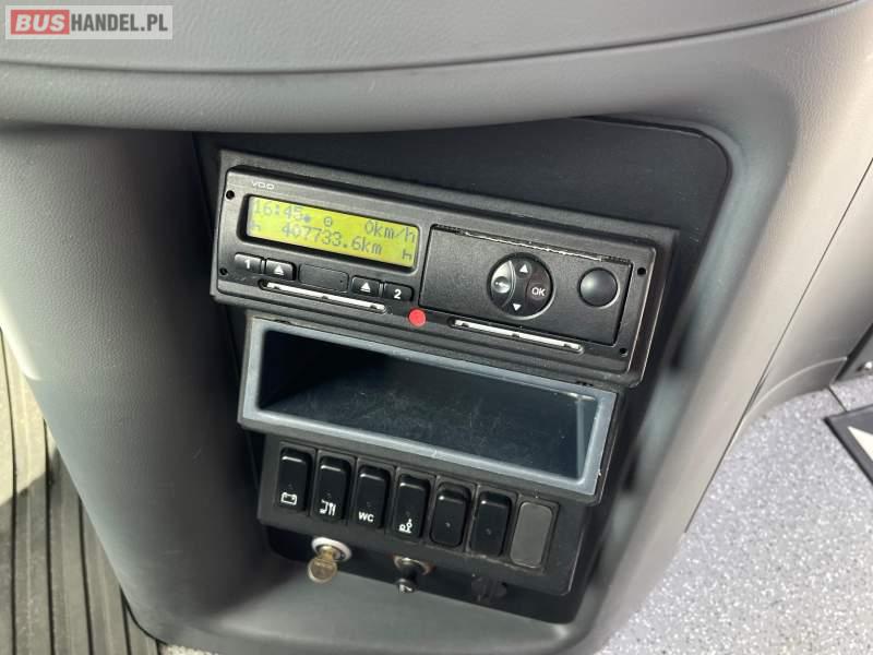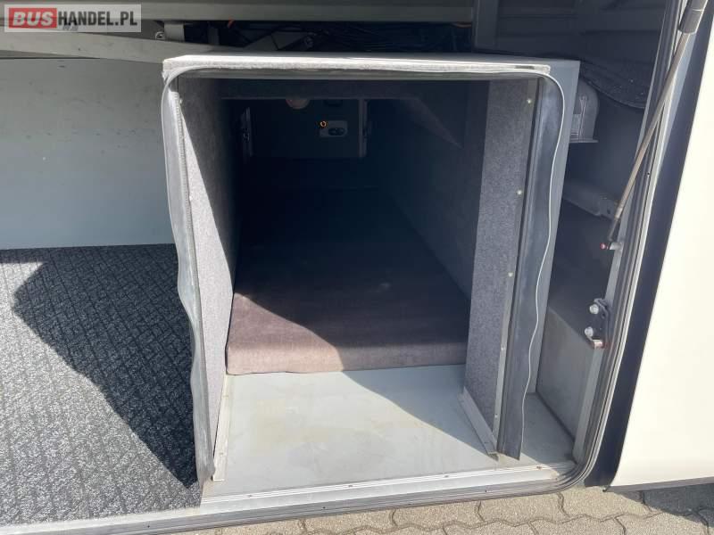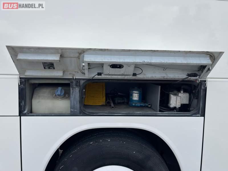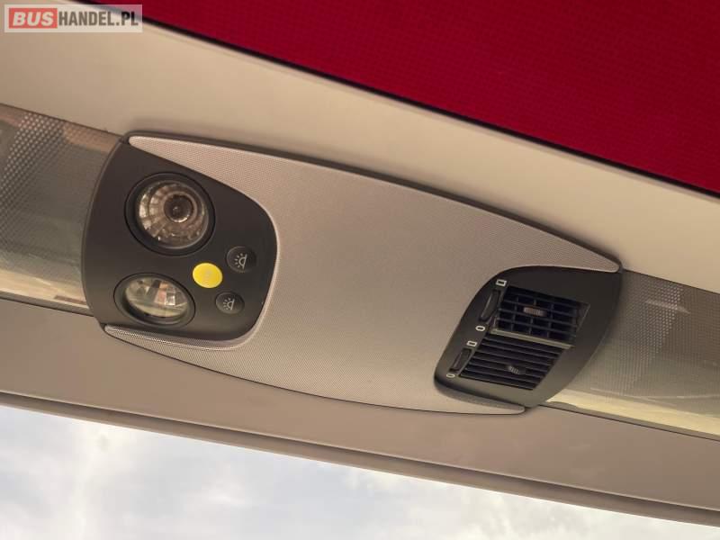 : video, WC, lodówka, caffebar, kabina sypialna, fotele odchylane, oświetlenie indywidualne, nawiewy dyszowe, siateczki, ABS, ASR, tempomat, retarder, podnóżki, stoliczki, mikrofon, klimatyzacja, radio, wyświetlacz matrix, sejf, regulacja wysokości nadwozia, centralny zamek, podwójne szyby boczne, wspomaganie kierownicy, elektryczne lusterka, DVD, ogrzewanie stacjonarne, ESP