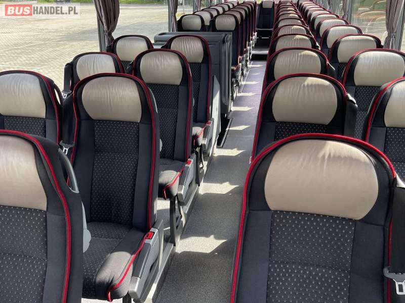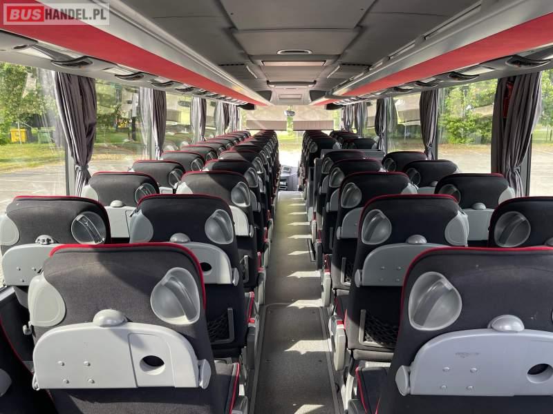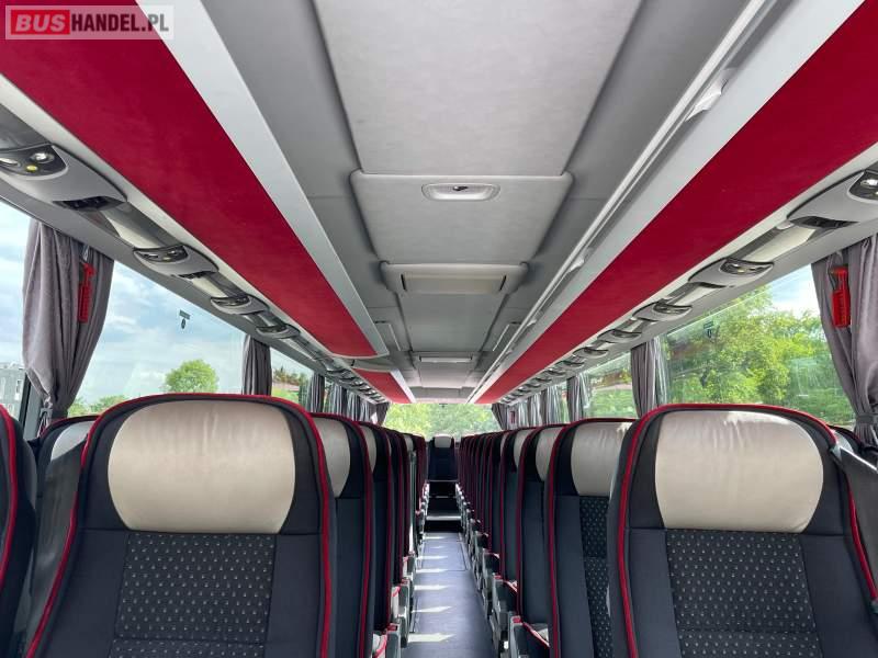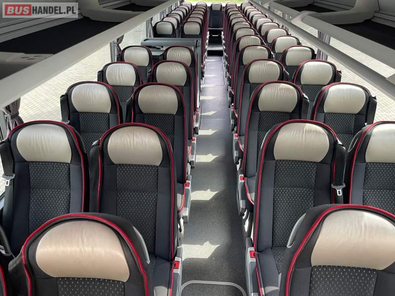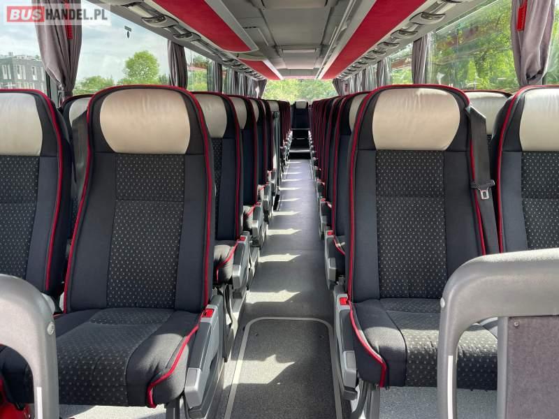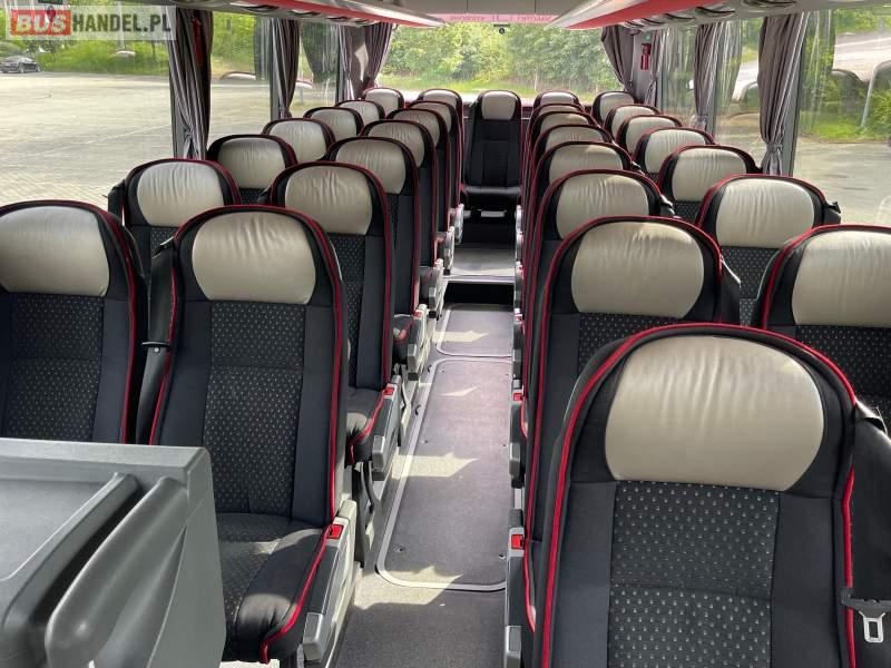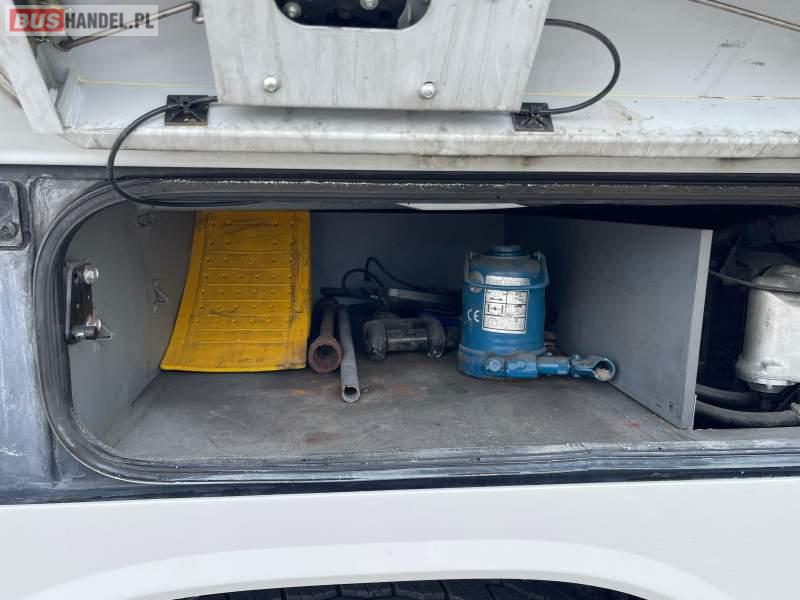 : video, WC, lodówka, caffebar, kabina sypialna, fotele odchylane, oświetlenie indywidualne, nawiewy dyszowe, siateczki, ABS, ASR, tempomat, retarder, podnóżki, stoliczki, mikrofon, klimatyzacja, radio, wyświetlacz matrix, sejf, regulacja wysokości nadwozia, centralny zamek, podwójne szyby boczne, wspomaganie kierownicy, elektryczne lusterka, DVD, ogrzewanie stacjonarne, ESP