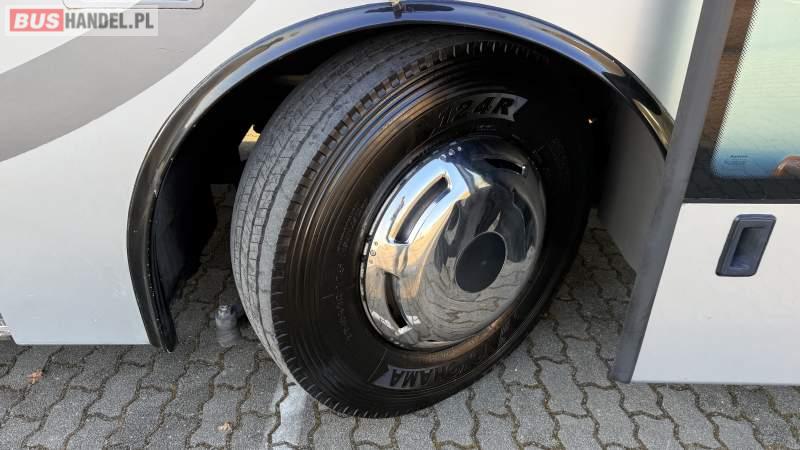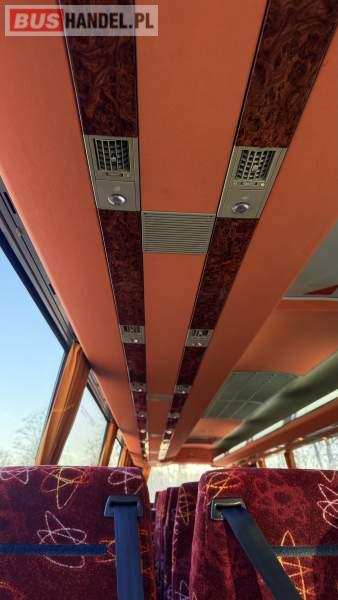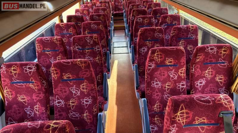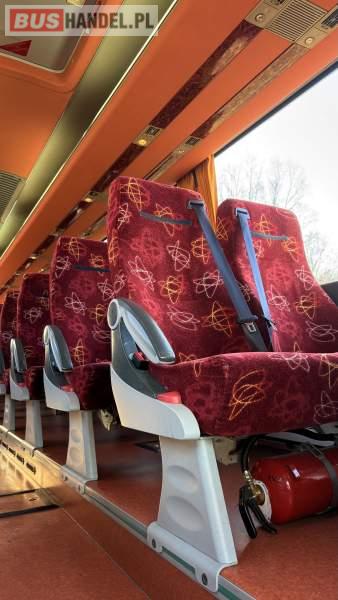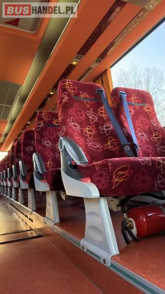 : video, lodówka, fotele odchylane, oświetlenie indywidualne, nawiewy dyszowe, siateczki, ABS, ASR, tempomat, retarder, podnóżki, mikrofon, klimatyzacja, wyświetlacz matrix, sejf, regulacja wysokości nadwozia, centralny zamek, podwójne szyby boczne, wspomaganie kierownicy, elektryczne lusterka, DVD, ogrzewanie stacjonarne, ESP
