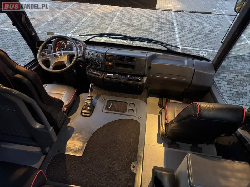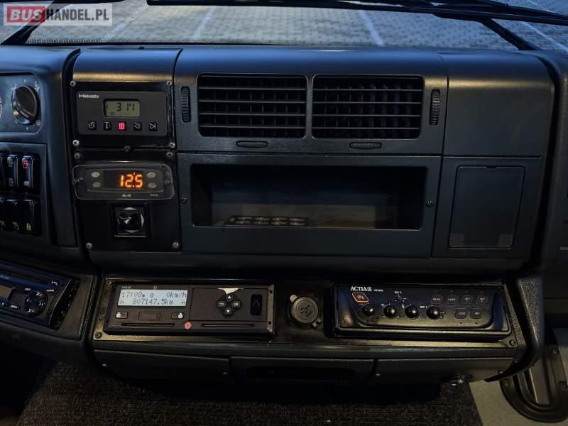 : video, lodówka, fotele odchylane, oświetlenie indywidualne, nawiewy dyszowe, siateczki, ABS, ASR, retarder, CD, podnóżki, mikrofon, klimatyzacja, wyświetlacz matrix, regulacja wysokości nadwozia, podwójne szyby boczne, wspomaganie kierownicy, elektryczne lusterka, DVD, ogrzewanie stacjonarne, ESP