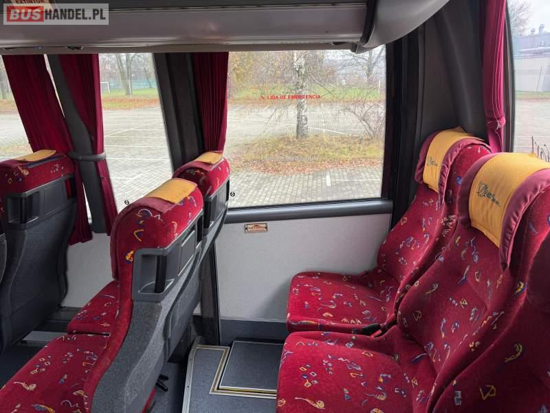 : video, lodówka, fotele odchylane, oświetlenie indywidualne, nawiewy dyszowe, ABS, ASR, tempomat, CD, mikrofon, klimatyzacja, wyświetlacz matrix, regulacja wysokości nadwozia, wspomaganie kierownicy, elektryczne lusterka, DVD, ogrzewanie stacjonarne
