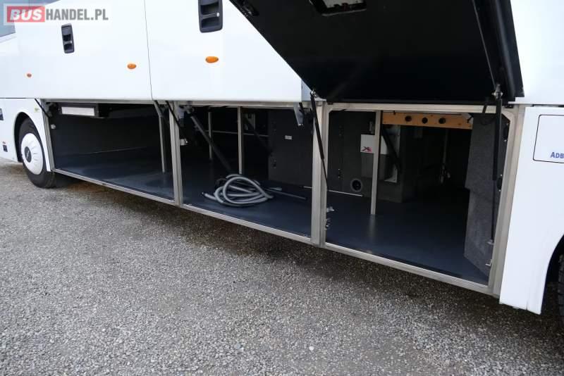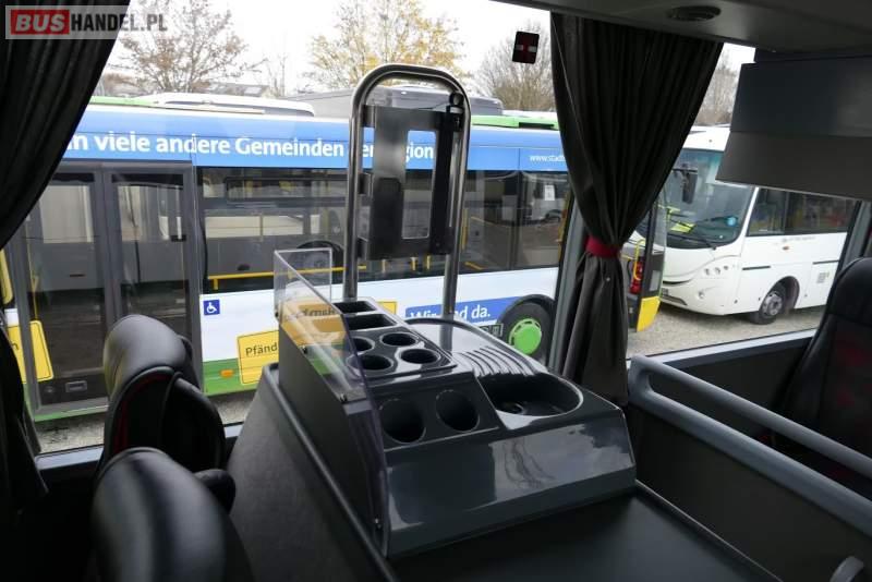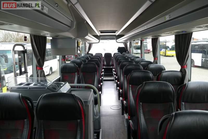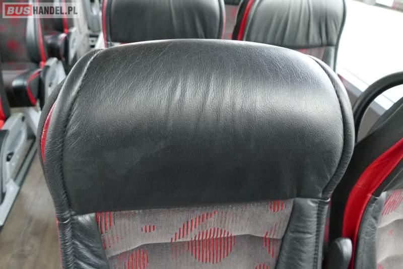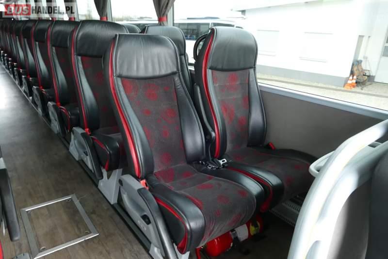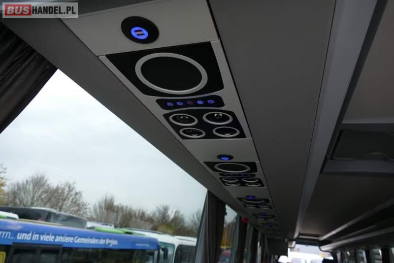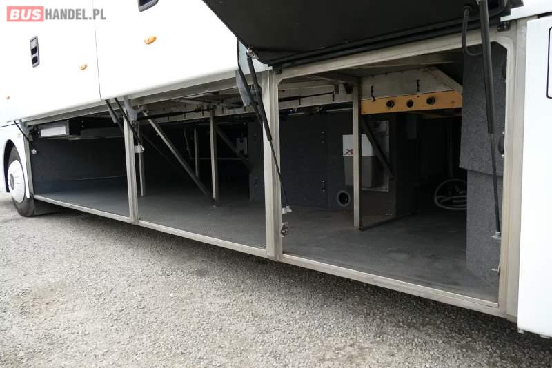 : video, WC, lodówka, caffebar, kabina sypialna, oświetlenie indywidualne, ABS, ASR, tempomat, retarder, CD, podnóżki, mikrofon, klimatyzacja, radio, regulacja wysokości nadwozia, centralny zamek, podwójne szyby boczne, wspomaganie kierownicy, elektryczne lusterka, fotele odchylane i rozsuwane, DVD, ogrzewanie stacjonarne, ESP