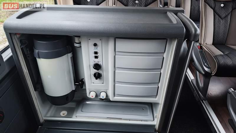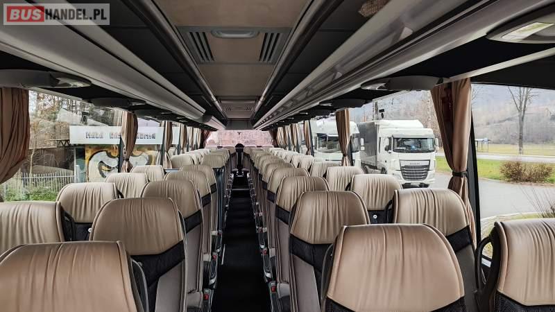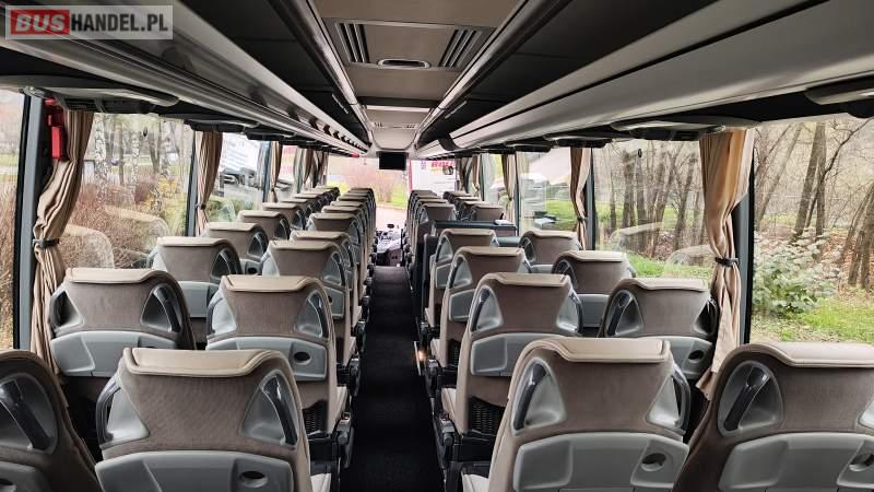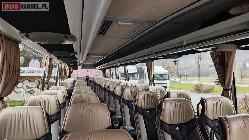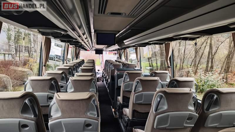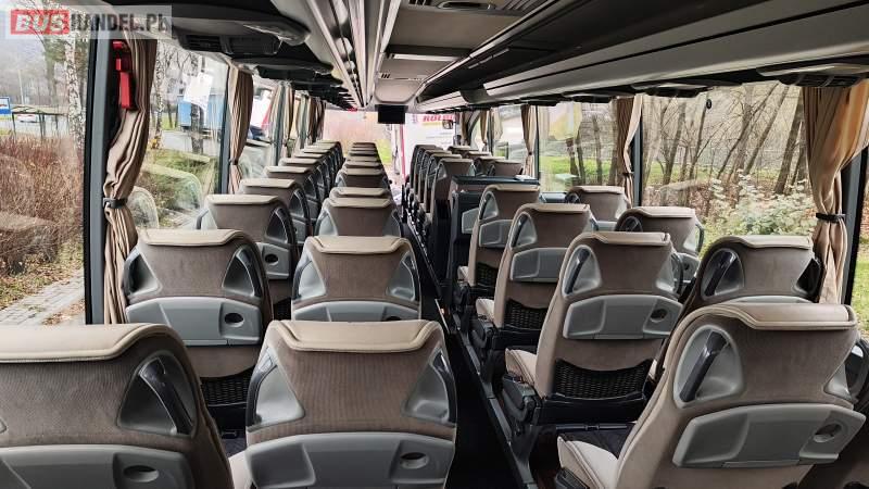 : video, WC, lodówka, caffebar, oświetlenie indywidualne, nawiewy dyszowe, siateczki, ABS, ASR, tempomat, retarder, CD, podnóżki, stoliczki, mikrofon, klimatyzacja, radio, sejf, regulacja wysokości nadwozia, centralny zamek, podwójne szyby boczne, wspomaganie kierownicy, elektryczne lusterka, fotele odchylane i rozsuwane, DVD, ogrzewanie stacjonarne, ESP