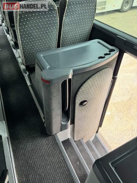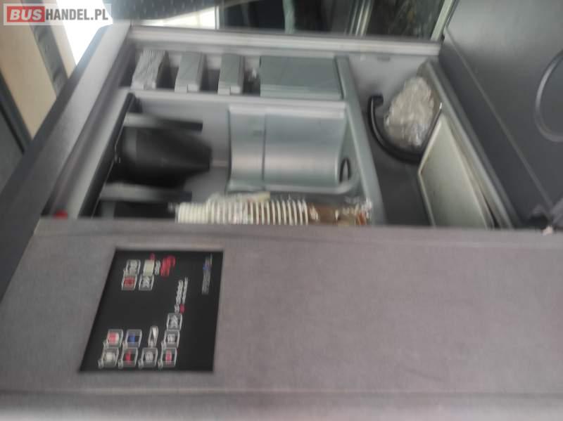 : video, WC, lodówka, caffebar, kabina sypialna, fotele odchylane, oświetlenie indywidualne, nawiewy dyszowe, siateczki, ABS, ASR, tempomat, retarder, telefon, nawigacja, CD, klimatyzacja, radio, wyświetlacz matrix, regulacja wysokości nadwozia, centralny zamek, wspomaganie kierownicy, elektryczne lusterka, DVD, ogrzewanie stacjonarne, ESP