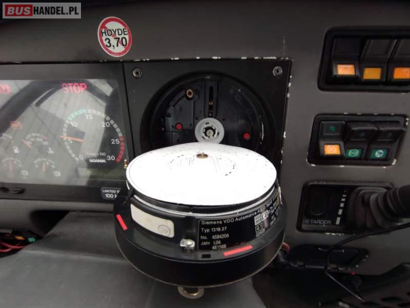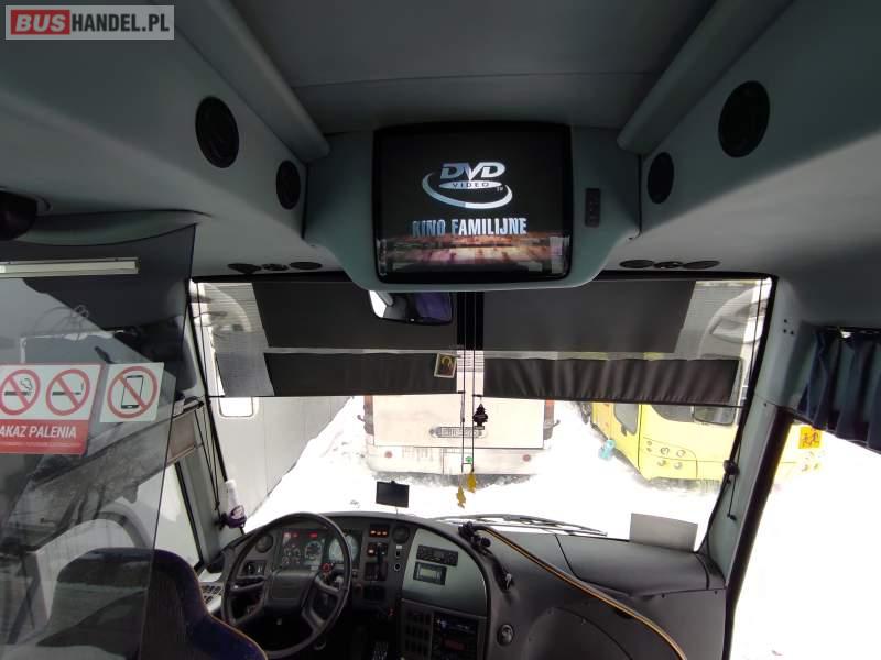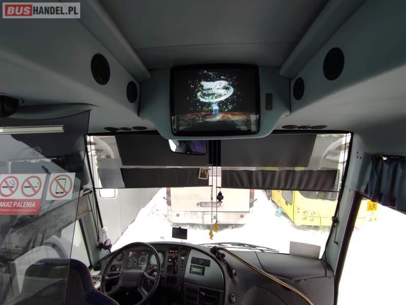 : video, lodówka, kabina sypialna, fotele odchylane, oświetlenie indywidualne, nawiewy dyszowe, siateczki, ABS, ASR, tempomat, retarder, telefon, nawigacja, CD, podnóżki, mikrofon, klimatyzacja, radio, wyświetlacz matrix, sejf, regulacja wysokości nadwozia, wspomaganie kierownicy, elektryczne lusterka, DVD, ogrzewanie stacjonarne, ESP