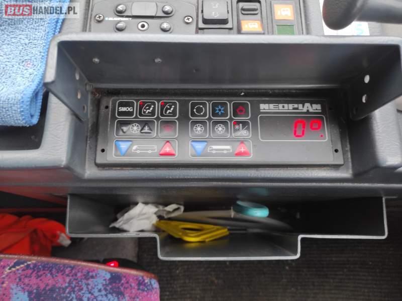 : video, WC, lodówka, caffebar, kabina sypialna, fotele odchylane, oświetlenie indywidualne, nawiewy dyszowe, siateczki, ABS, ASR, tempomat, retarder, telefon, nawigacja, CD, podnóżki, stoliczki, mikrofon, klimatyzacja, radio, sejf, regulacja wysokości nadwozia, centralny zamek, podwójne szyby boczne, wspomaganie kierownicy, elektryczne lusterka, fotele odchylane i rozsuwane, DVD, ogrzewanie stacjonarne, ESP
