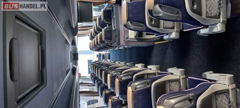 : WC, lodówka, kabina sypialna, fotele odchylane, oświetlenie indywidualne, nawiewy dyszowe, siateczki, ABS, ASR, tempomat, retarder, podnóżki, stoliczki, mikrofon, klimatyzacja, radio, sejf, regulacja wysokości nadwozia, podwójne szyby boczne, wspomaganie kierownicy, elektryczne lusterka, aluminiowe felgi, DVD, ogrzewanie stacjonarne, ESP