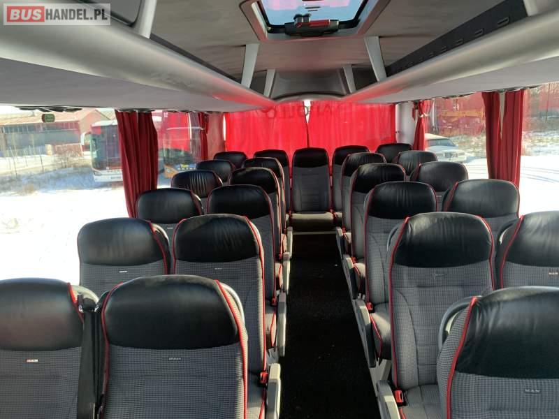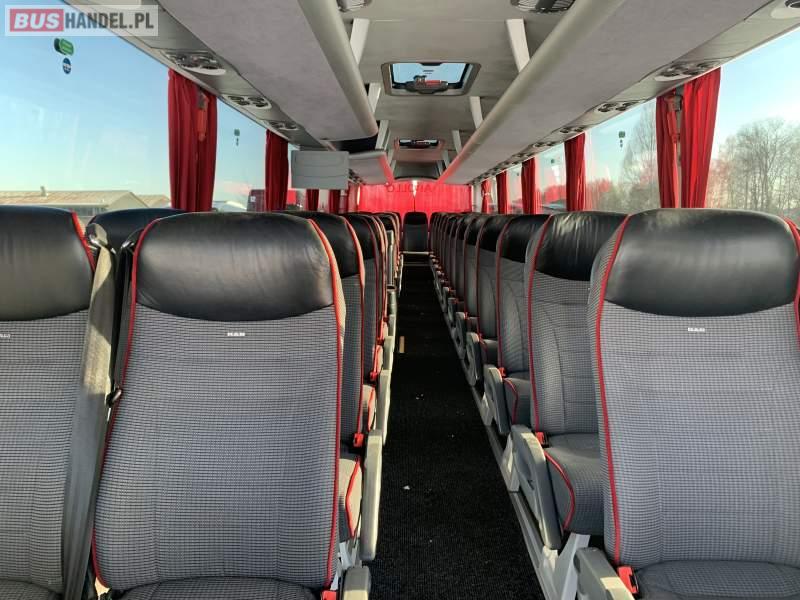 : video, WC, lodówka, kabina sypialna, nawiewy dyszowe, siateczki, ABS, ASR, tempomat, retarder, CD, podnóżki, stoliczki, mikrofon, radio, regulacja wysokości nadwozia, podwójne szyby boczne, fotele odchylane i rozsuwane, DVD, ogrzewanie stacjonarne, ESP