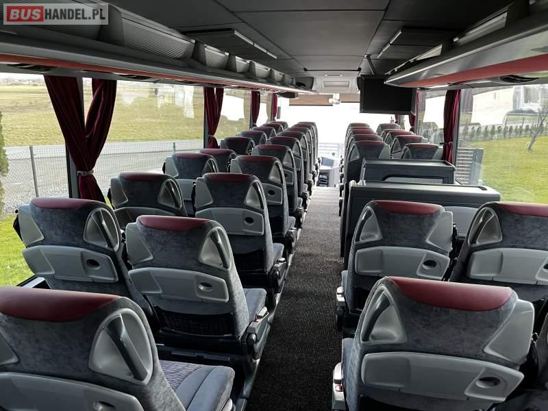 : video, WC, lodówka, caffebar, oświetlenie indywidualne, nawiewy dyszowe, siateczki, ABS, ASR, tempomat, retarder, CD, podnóżki, stoliczki, mikrofon, klimatyzacja, radio, sejf, regulacja wysokości nadwozia, centralny zamek, podwójne szyby boczne, wspomaganie kierownicy, elektryczne lusterka, fotele odchylane i rozsuwane, DVD, ogrzewanie stacjonarne, ESP