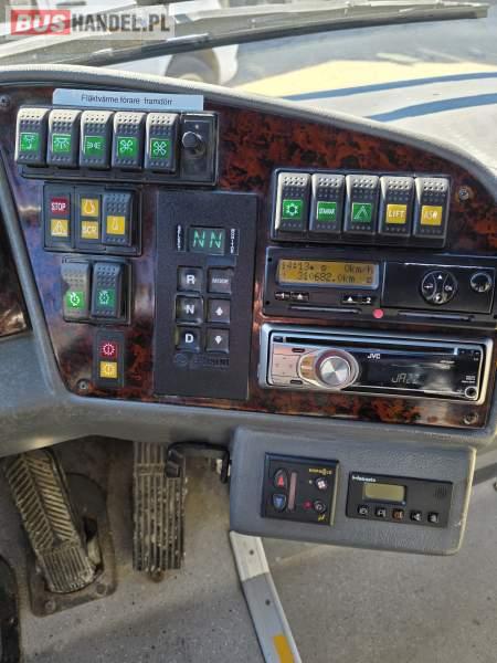 : fotele odchylane, oświetlenie indywidualne, nawiewy dyszowe, ABS, ASR, retarder, klimatyzacja, radio, centralny zamek, podwójne szyby boczne, elektryczne lusterka, ogrzewanie stacjonarne