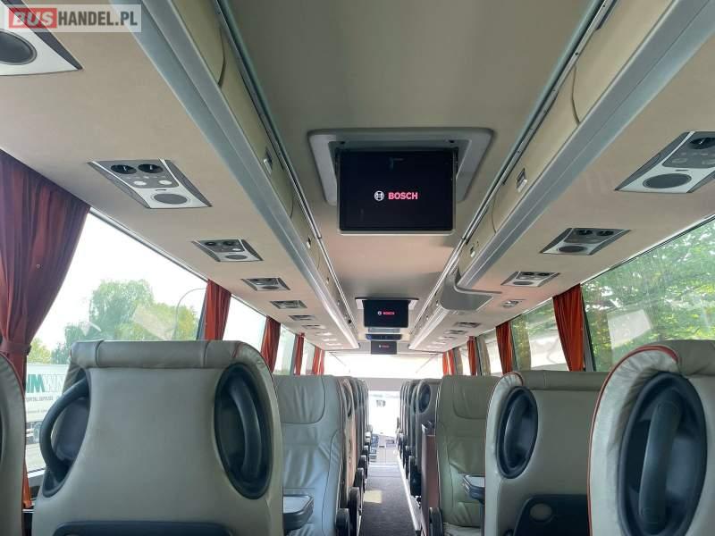 Wyposażenie : klimatyzacja, video, WC, lodówka, caffebar, kabina sypialna, oświetlenie indywidualne, nawiewy dyszowe, fotele odchylane, podnóżki, stoliczki, siateczki, ABS, ASR, tempomat, retarder, nawigacja, CD, mikrofon, radio, kuchenka mikrofalowa, regulacja wysokości nadwozia, centralny zamek, podwójne szyby boczne, wspomaganie kierownicy, elektryczne lusterka, ogrzewanie stacjonarne, DVD, ESP