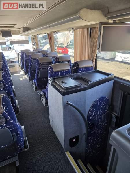 : WC, lodówka, caffebar, kabina sypialna, oświetlenie indywidualne, nawiewy dyszowe, siateczki, ABS, ASR, tempomat, retarder, podnóżki, stoliczki, mikrofon, klimatyzacja, radio, sejf, regulacja wysokości nadwozia, centralny zamek, podwójne szyby boczne, wspomaganie kierownicy, elektryczne lusterka, fotele odchylane i rozsuwane, DVD, ogrzewanie stacjonarne, ESP
