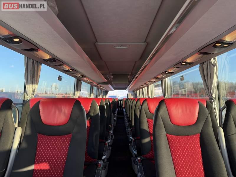 : video, WC, lodówka, caffebar, oświetlenie indywidualne, siateczki, ABS, ASR, tempomat, retarder, telefon, nawigacja, CD, podnóżki, stoliczki, mikrofon, klimatyzacja, radio, sejf, regulacja wysokości nadwozia, centralny zamek, podwójne szyby boczne, wspomaganie kierownicy, elektryczne lusterka, fotele odchylane i rozsuwane, DVD, ogrzewanie stacjonarne, hak holowniczy, ESP