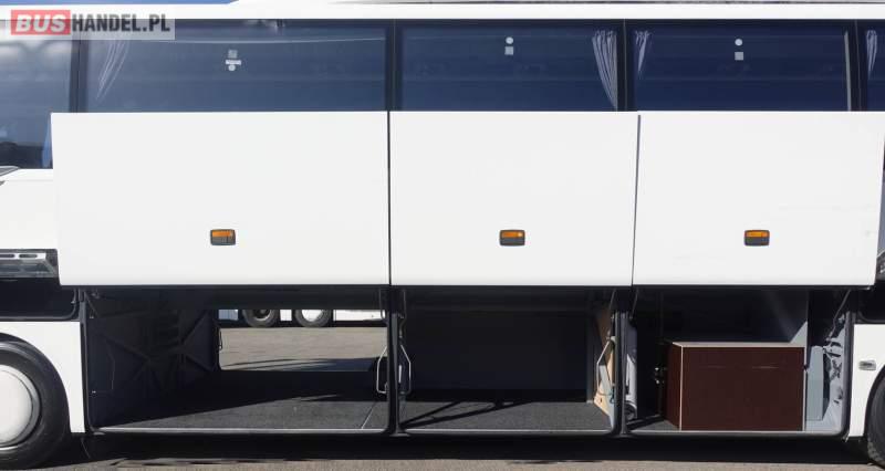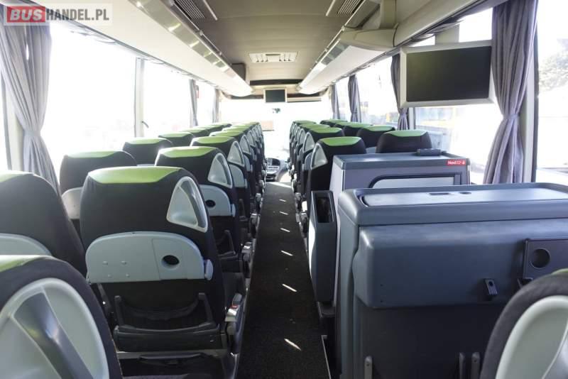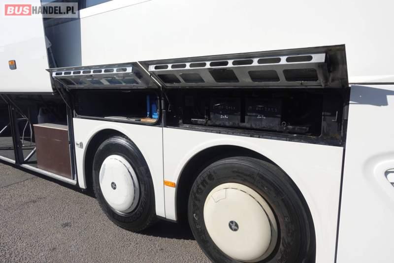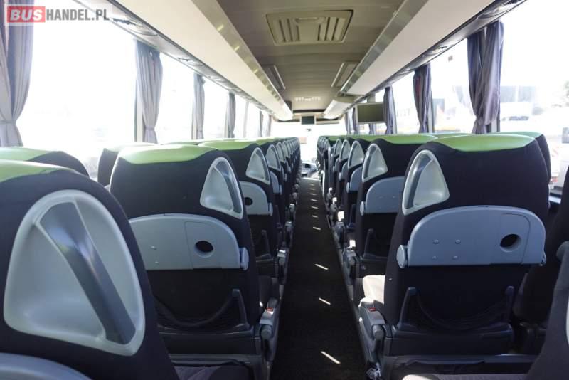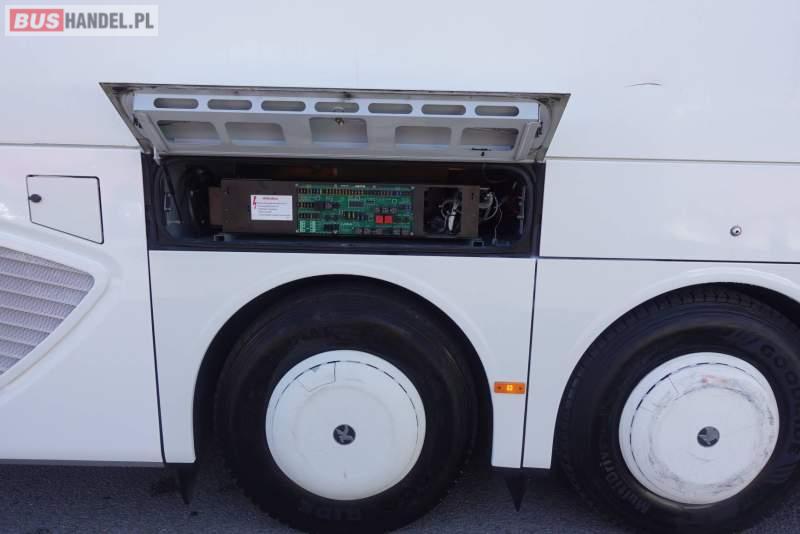 : WC, lodówka, caffebar, kabina sypialna, fotele odchylane, oświetlenie indywidualne, nawiewy dyszowe, siateczki, ABS, ASR, tempomat, retarder, nawigacja, CD, podnóżki, stoliczki, mikrofon, klimatyzacja, radio, regulacja wysokości nadwozia, centralny zamek, podwójne szyby boczne, wspomaganie kierownicy, elektryczne lusterka, fotele odchylane i rozsuwane, DVD, ogrzewanie stacjonarne, ESP