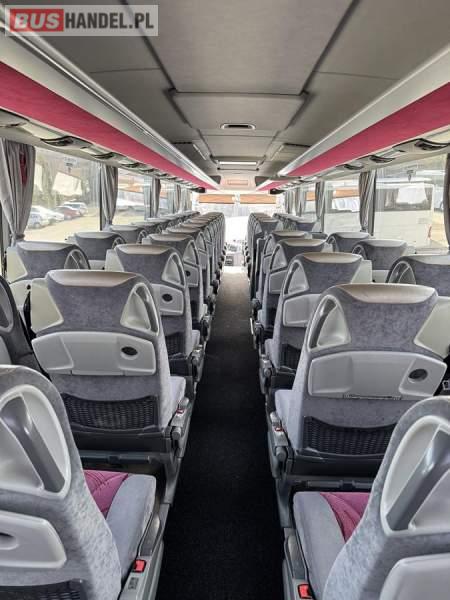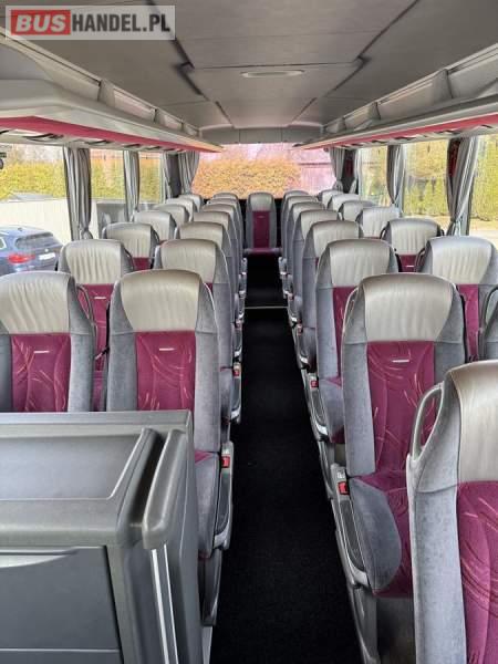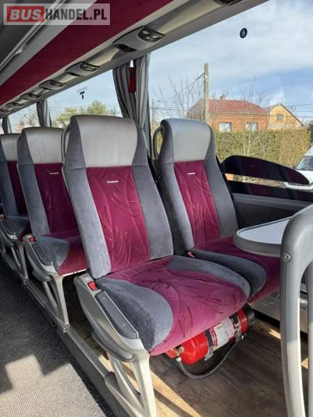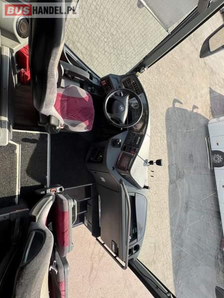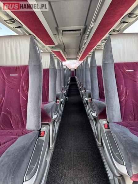 : WC, lodówka, caffebar, kabina sypialna, fotele odchylane, oświetlenie indywidualne, nawiewy dyszowe, siateczki, ABS, ASR, tempomat, retarder, CD, podnóżki, stoliczki, mikrofon, klimatyzacja, radio, wyświetlacz matrix, sejf, regulacja wysokości nadwozia, centralny zamek, podwójne szyby boczne, wspomaganie kierownicy, elektryczne lusterka, DVD, ogrzewanie stacjonarne, ESP