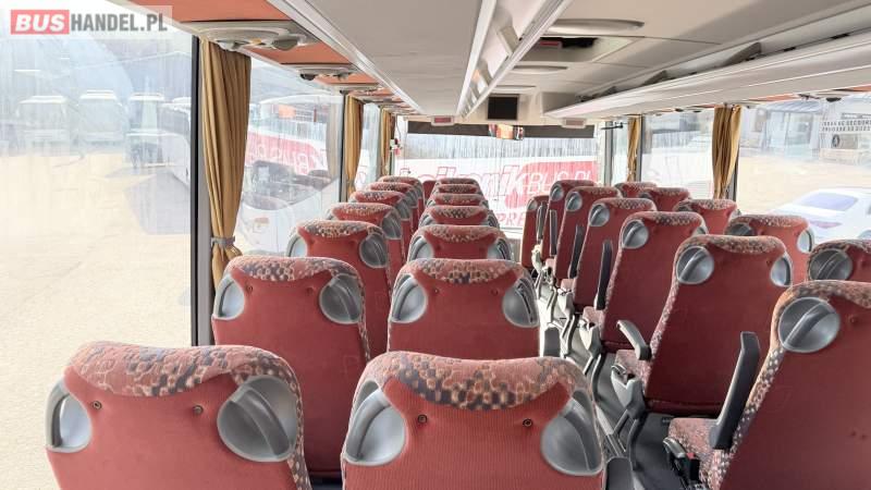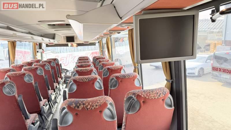 : klimatyzacja, lodówka, oświetlenie indywidualne, nawiewy dyszowe, fotele odchylane, podnóżki, stoliczki, siateczki, ABS, ASR, tempomat, retarder, mikrofon, radio, wyświetlacz matrix, sejf, regulacja wysokości nadwozia, centralny zamek, podwójne szyby boczne, wspomaganie kierownicy, elektryczne lusterka, ogrzewanie stacjonarne, DVD