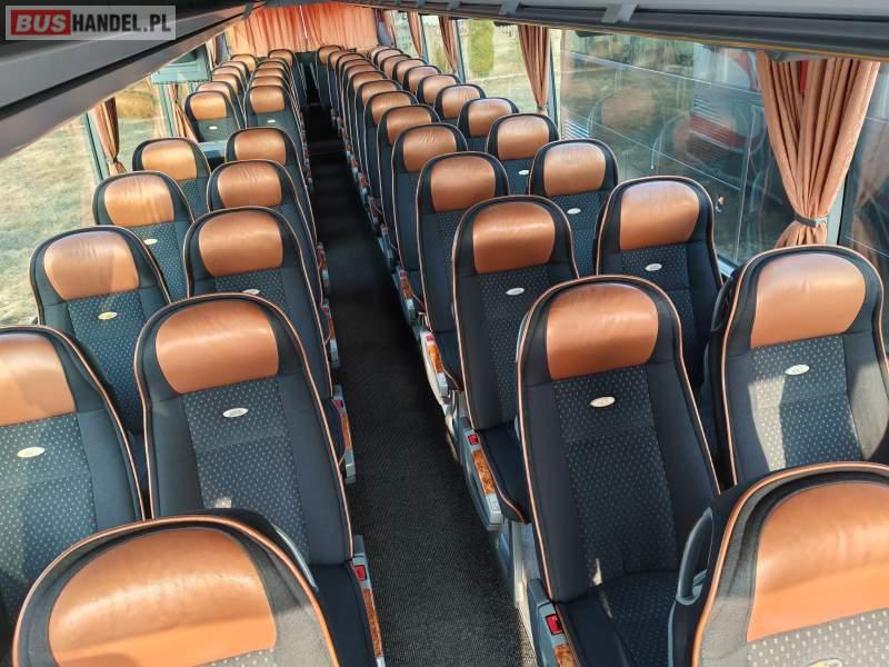 : WC, lodówka, oświetlenie indywidualne, nawiewy dyszowe, siateczki, ABS, tempomat, retarder, nawigacja, CD, podnóżki, stoliczki, mikrofon, klimatyzacja, radio, sejf, regulacja wysokości nadwozia, centralny zamek, podwójne szyby boczne, wspomaganie kierownicy, elektryczne lusterka, aluminiowe felgi, fotele odchylane i rozsuwane, DVD, ESP