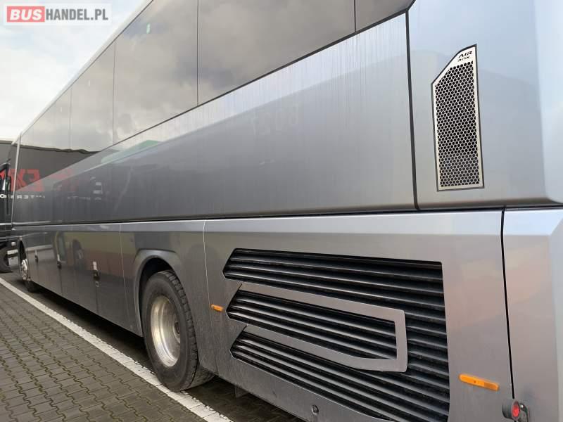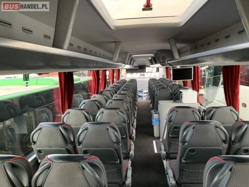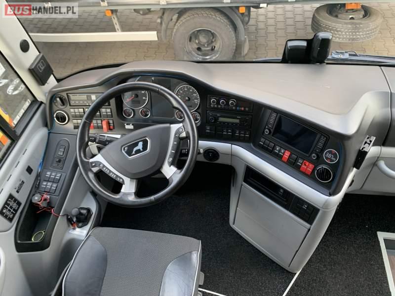 : video, WC, lodówka, kabina sypialna, oświetlenie indywidualne, siateczki, ABS, ASR, tempomat, retarder, podnóżki, stoliczki, mikrofon, radio, regulacja wysokości nadwozia, centralny zamek, podwójne szyby boczne, wspomaganie kierownicy, aluminiowe felgi, fotele odchylane i rozsuwane, DVD, ogrzewanie stacjonarne, ESP