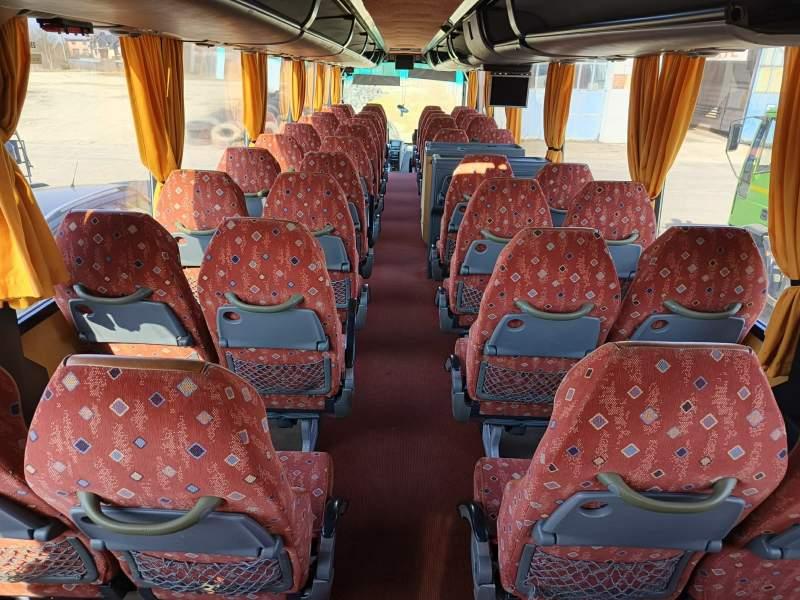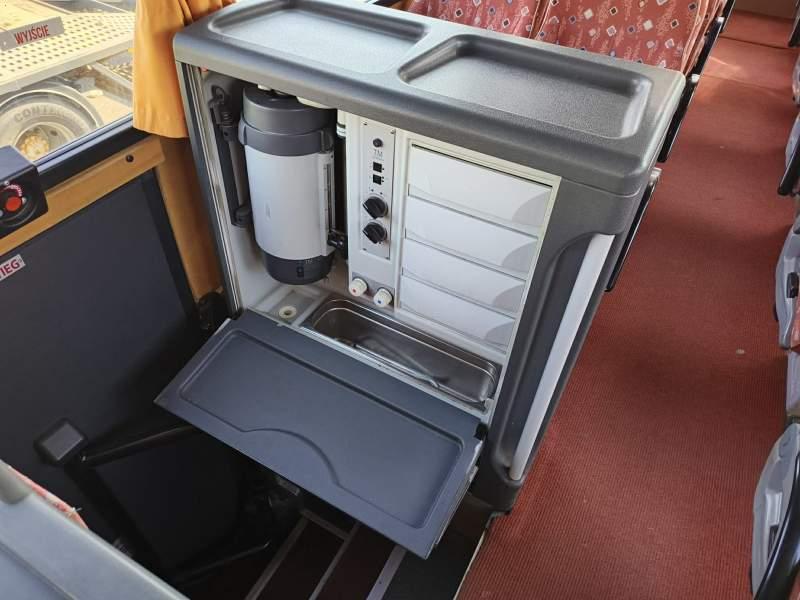 : WC, lodówka, caffebar, kabina sypialna, fotele odchylane, nawiewy dyszowe, siateczki, ABS, ASR, tempomat, retarder, podnóżki, stoliczki, mikrofon, klimatyzacja, radio, regulacja wysokości nadwozia, centralny zamek, wspomaganie kierownicy, elektryczne lusterka, fotele odchylane i rozsuwane, ESP