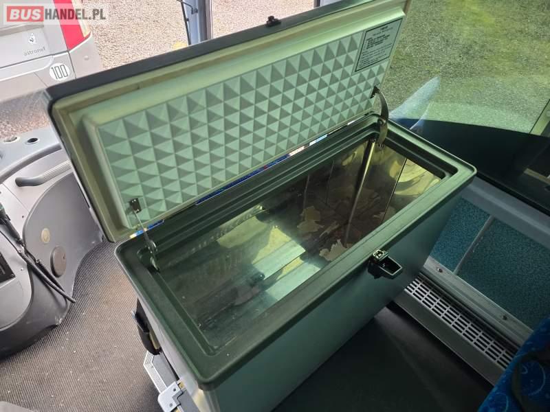 : video, lodówka, oświetlenie indywidualne, ABS, ASR, tempomat, retarder, CD, podnóżki, mikrofon, klimatyzacja, radio, regulacja wysokości nadwozia, centralny zamek, podwójne szyby boczne, wspomaganie kierownicy, elektryczne lusterka, fotele odchylane i rozsuwane, DVD, ogrzewanie stacjonarne, ESP