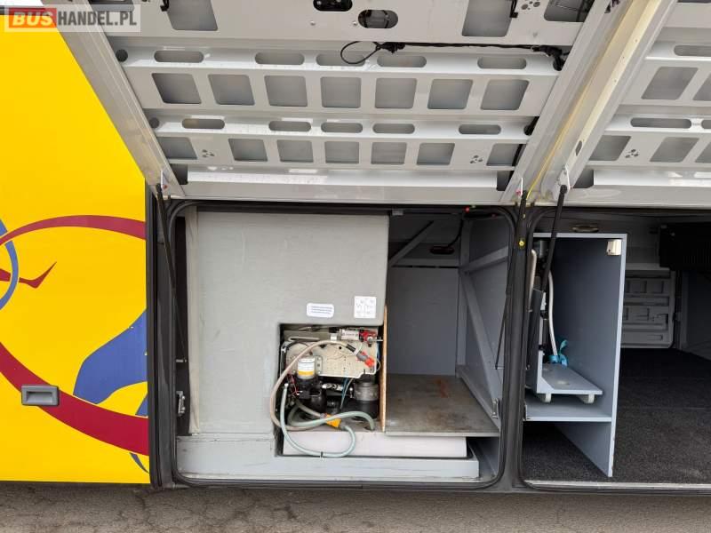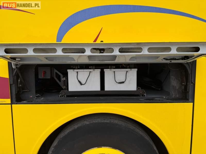 : WC, lodówka, caffebar, kabina sypialna, oświetlenie indywidualne, nawiewy dyszowe, siateczki, ABS, ASR, tempomat, retarder, podnóżki, stoliczki, mikrofon, klimatyzacja, radio, sejf, regulacja wysokości nadwozia, centralny zamek, podwójne szyby boczne, wspomaganie kierownicy, elektryczne lusterka, fotele odchylane i rozsuwane, DVD, ogrzewanie stacjonarne, ESP