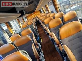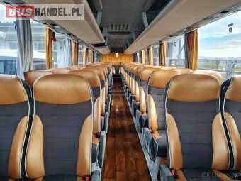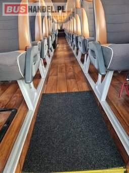: video, WC, lodówka, caffebar, kabina sypialna, fotele odchylane, oświetlenie indywidualne, siateczki, ABS, ASR, tempomat, retarder, telefon, nawigacja, CD, podnóżki, stoliczki, mikrofon, klimatyzacja, radio, kuchenka mikrofalowa, sejf, regulacja wysokości nadwozia, centralny zamek, podwójne szyby boczne, wspomaganie kierownicy, elektryczne lusterka, aluminiowe felgi, fotele odchylane i rozsuwane, DVD, ogrzewanie stacjonarne, ESP