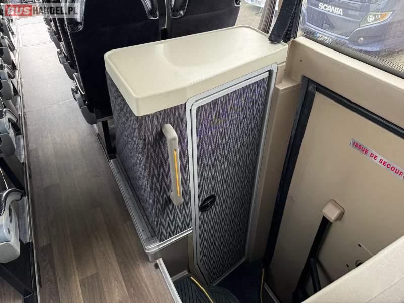 : video, WC, lodówka, caffebar, oświetlenie indywidualne, ABS, ASR, tempomat, retarder, CD, podnóżki, mikrofon, klimatyzacja, radio, regulacja wysokości nadwozia, centralny zamek, podwójne szyby boczne, wspomaganie kierownicy, fotele odchylane i rozsuwane, DVD, ogrzewanie stacjonarne, ESP