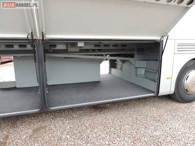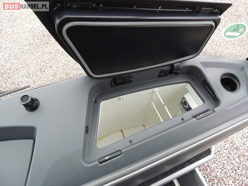 : video, WC, lodówka, oświetlenie indywidualne, nawiewy dyszowe, siateczki, ABS, ASR, tempomat, retarder, CD, podnóżki, stoliczki, mikrofon, klimatyzacja, radio, regulacja wysokości nadwozia, centralny zamek, podwójne szyby boczne, wspomaganie kierownicy, elektryczne lusterka, fotele odchylane i rozsuwane, DVD, ogrzewanie stacjonarne, ESP