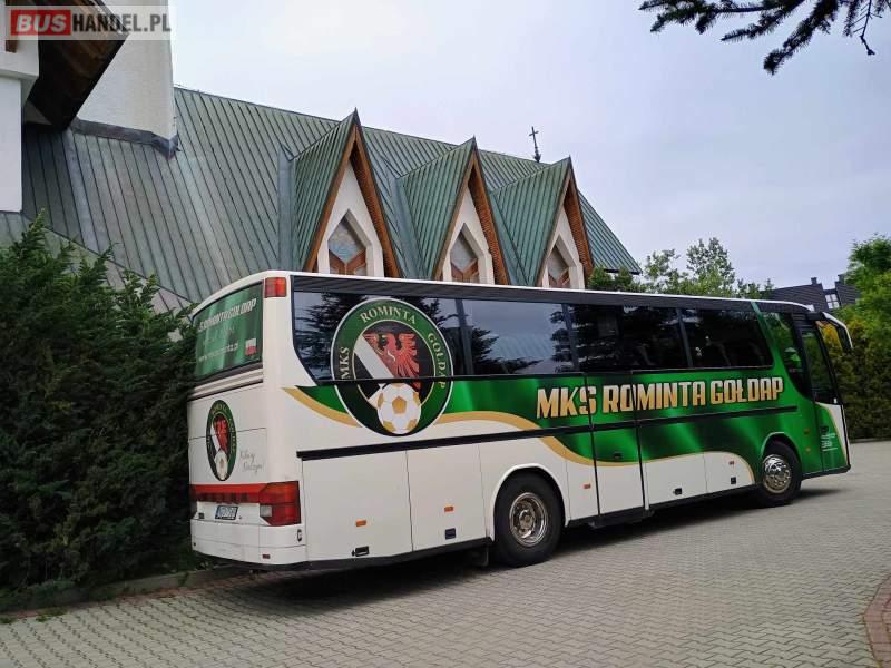 : lodówka, caffebar, fotele odchylane, oświetlenie indywidualne, nawiewy dyszowe, siateczki, ABS, ASR, tempomat, retarder, podnóżki, stoliczki, mikrofon, klimatyzacja, radio, regulacja wysokości nadwozia, centralny zamek, podwójne szyby boczne, wspomaganie kierownicy, elektryczne lusterka, fotele odchylane i rozsuwane, ogrzewanie stacjonarne