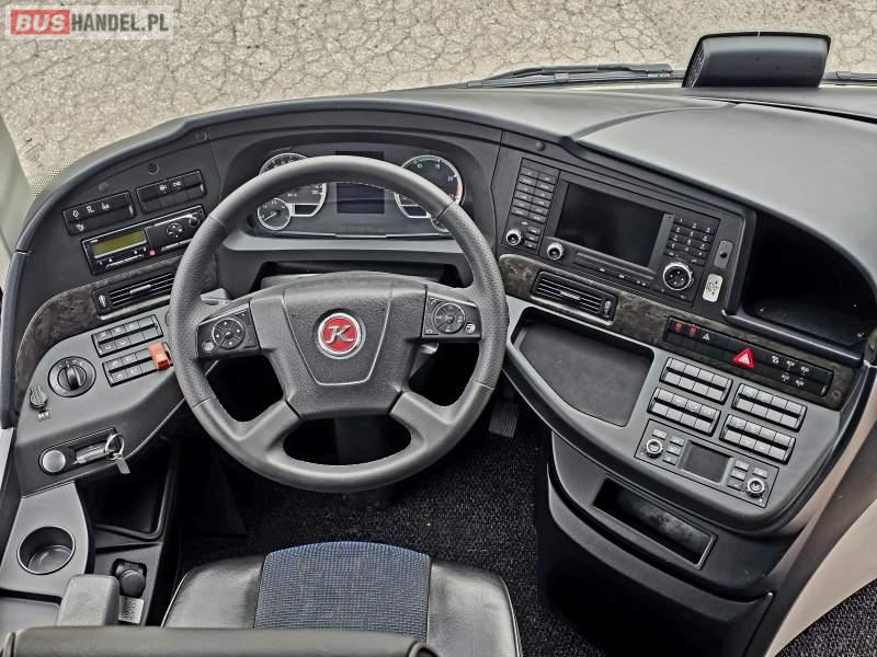 : WC, lodówka, fotele odchylane, oświetlenie indywidualne, nawiewy dyszowe, siateczki, ABS, ASR, tempomat, retarder, podnóżki, stoliczki, mikrofon, klimatyzacja, radio, sejf, regulacja wysokości nadwozia, centralny zamek, podwójne szyby boczne, wspomaganie kierownicy, elektryczne lusterka, fotele odchylane i rozsuwane, DVD, ogrzewanie stacjonarne, ESP